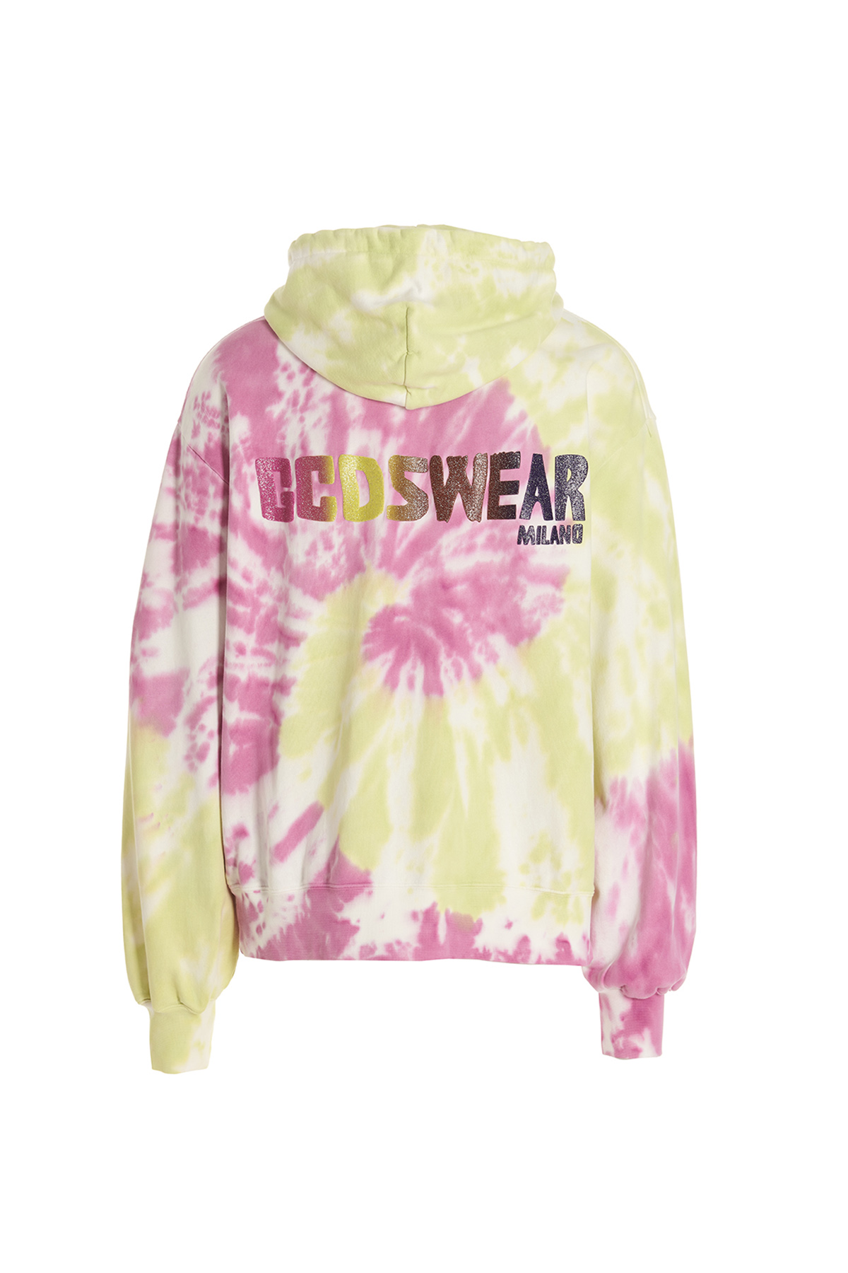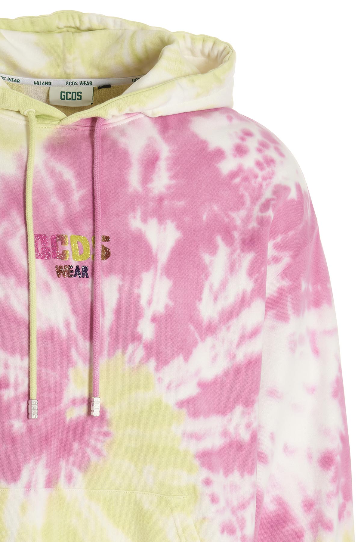 GCDS Tie Dye' cotton hoodie with all-over tie dye print, front and back logo print, a kangaroo pocket and long cuffed sleeves.