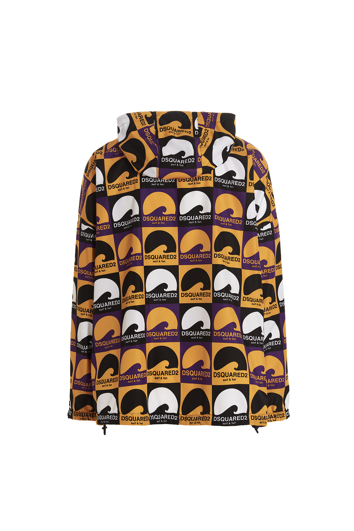 K-way 'D2 surf&fun' waterproof style with an all over print, featuring a hood and zipper closure.