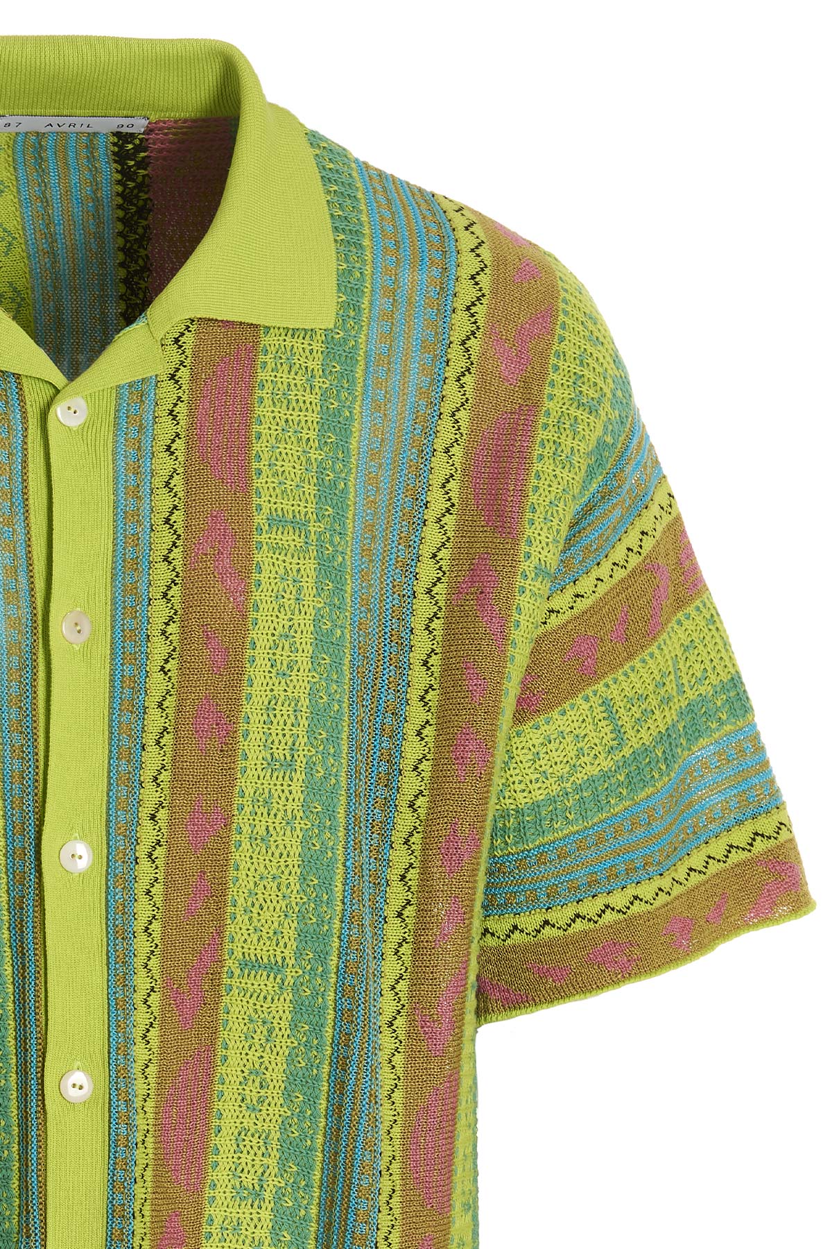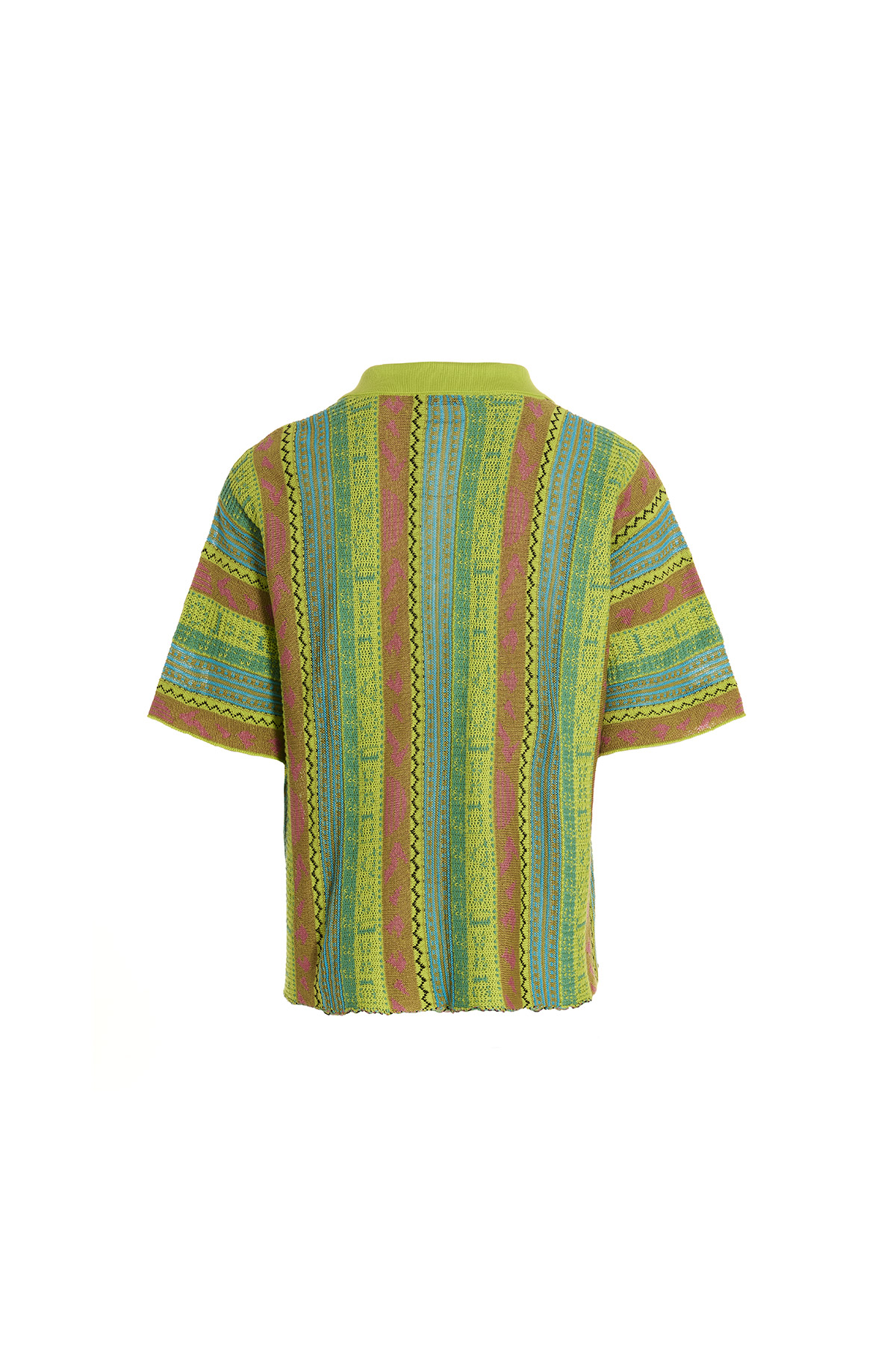 Multicolor cotton and linen jacquard shirt, with button closure, short sleeves.