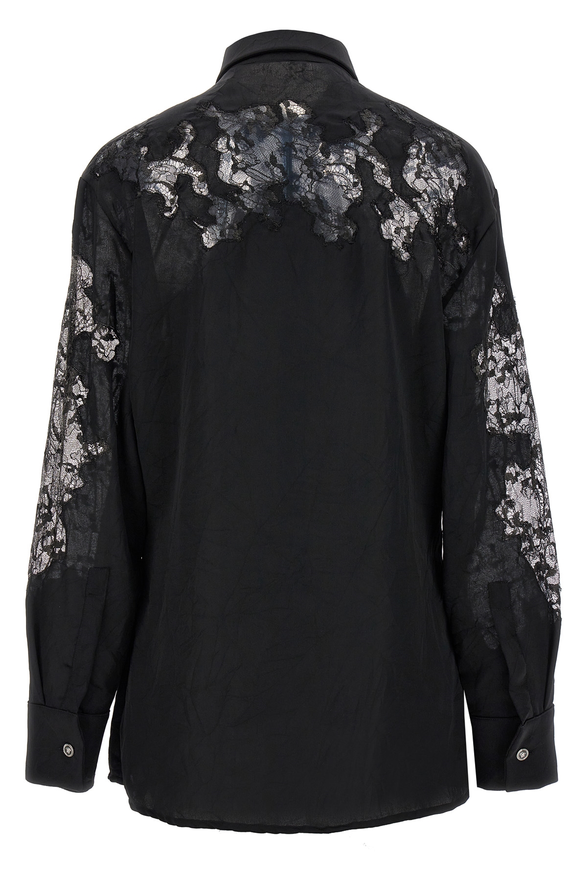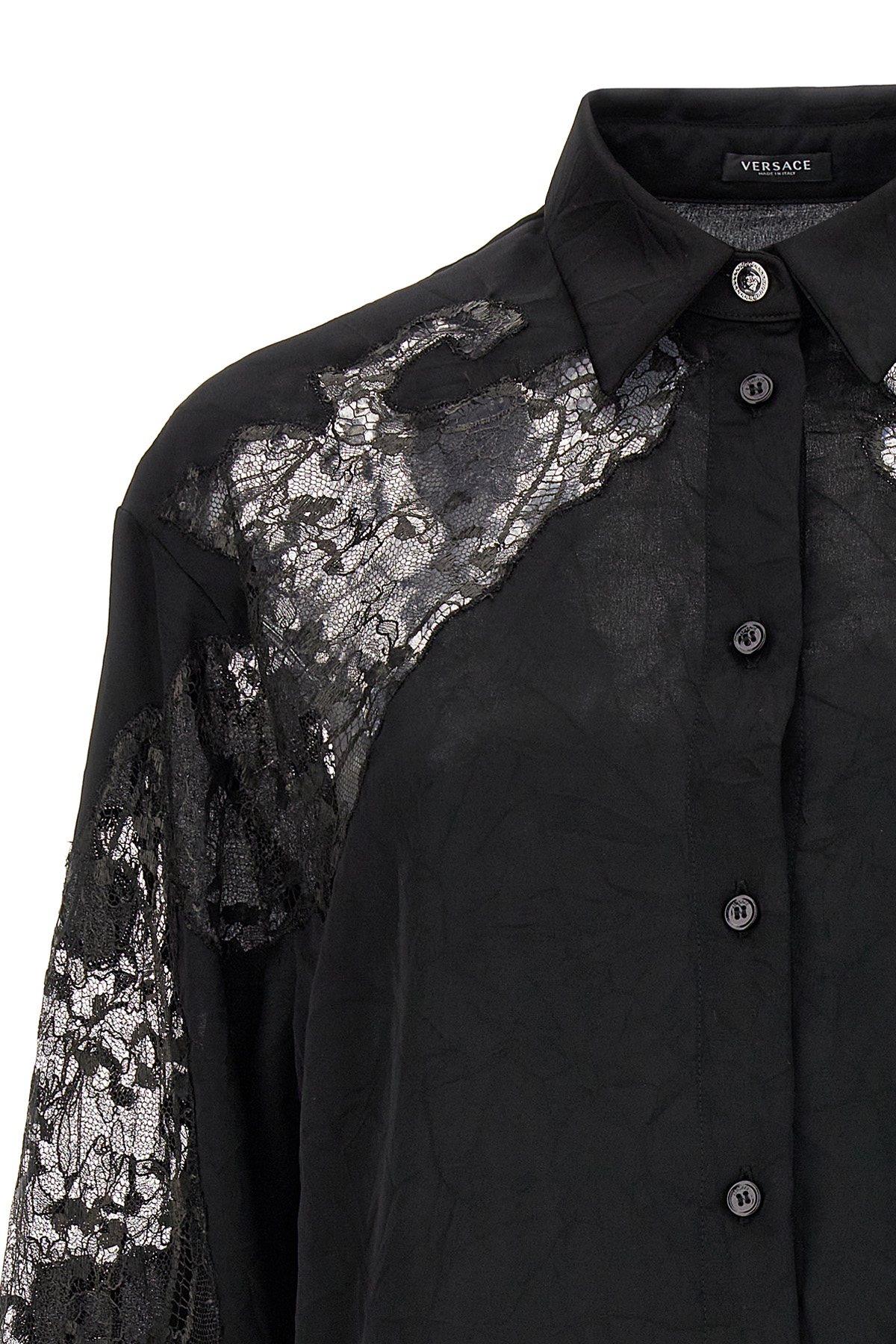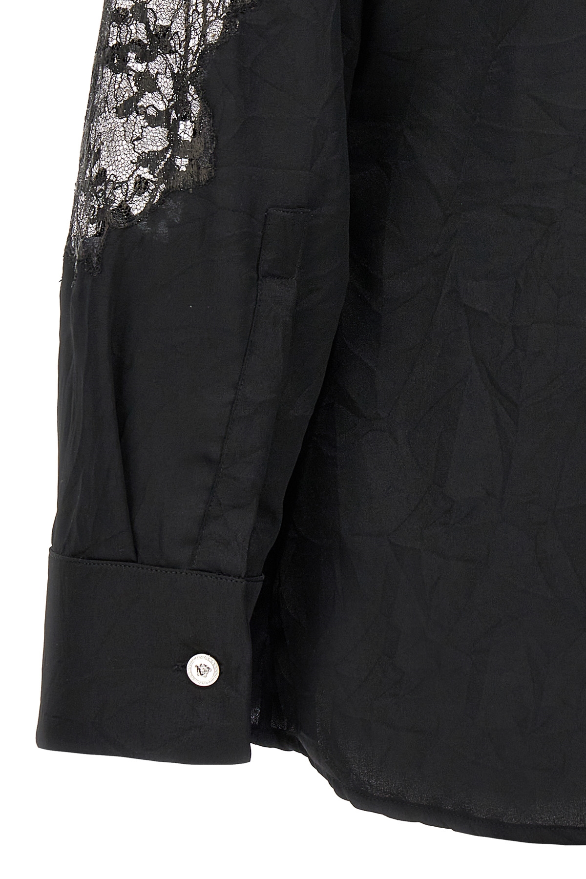Recycled-effect satin shirt with lace inserts, long cuffed sleeves and a button closure.