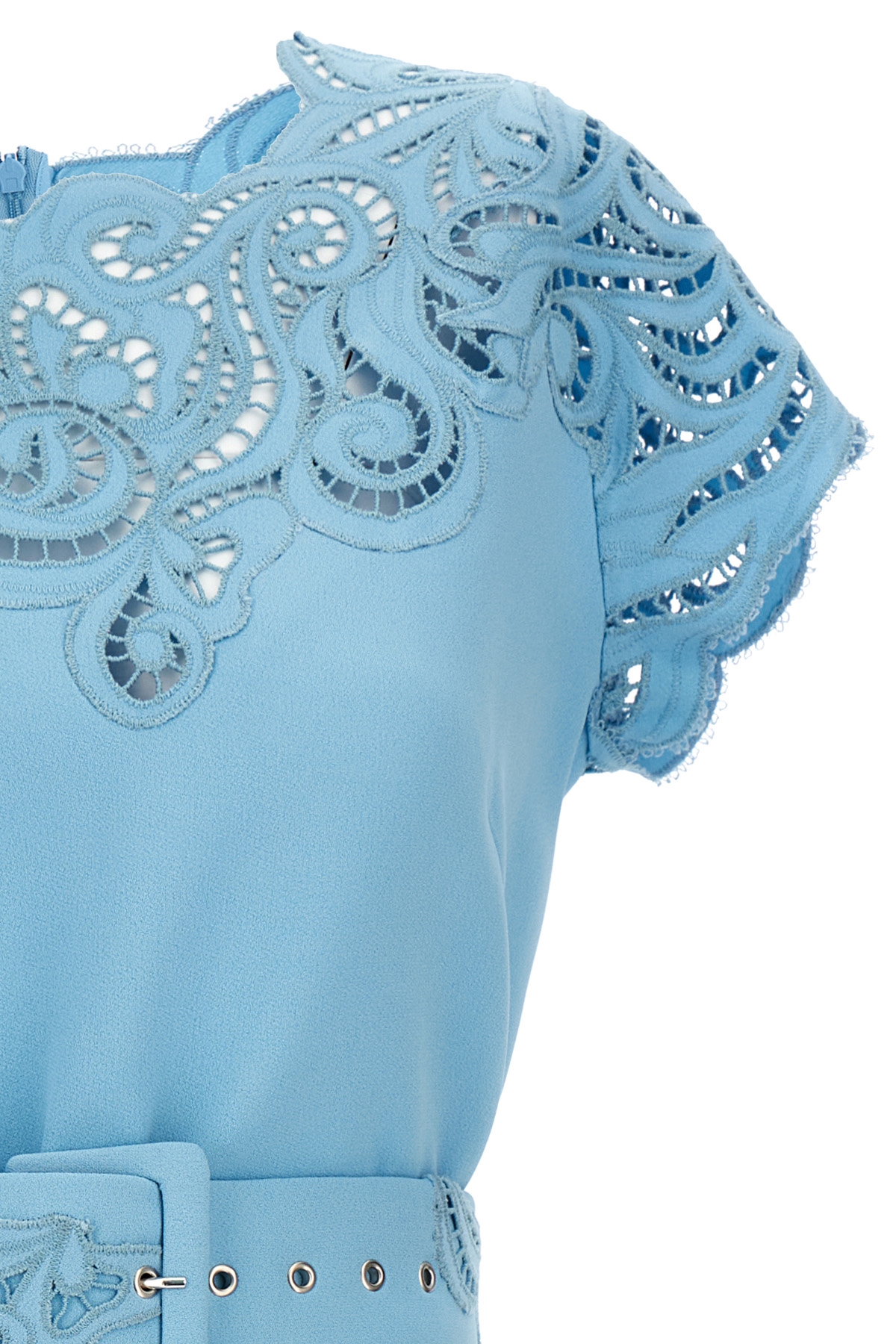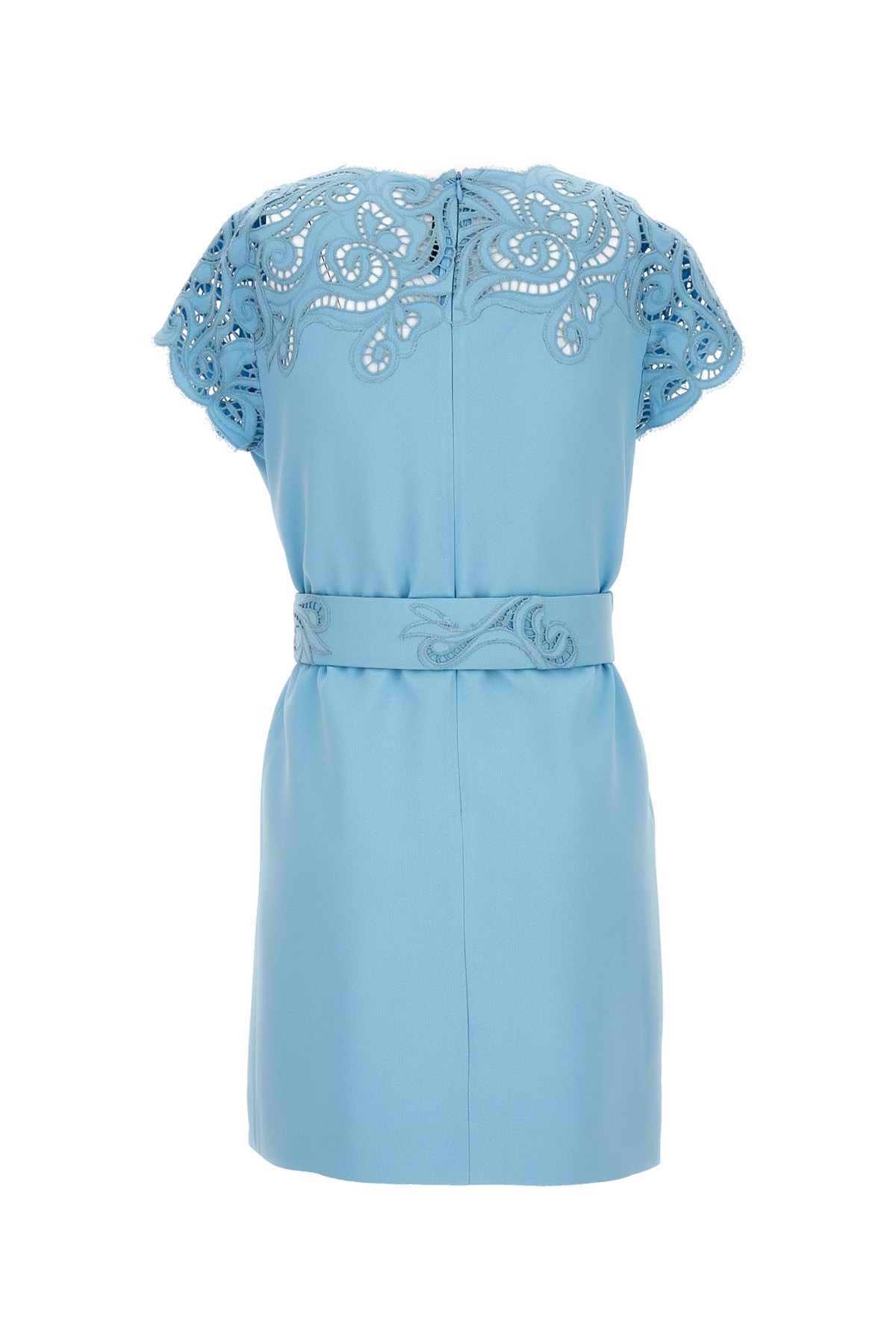 Viscose blend dress with lace detail, crewneck, short sleeves and a back zip closure.