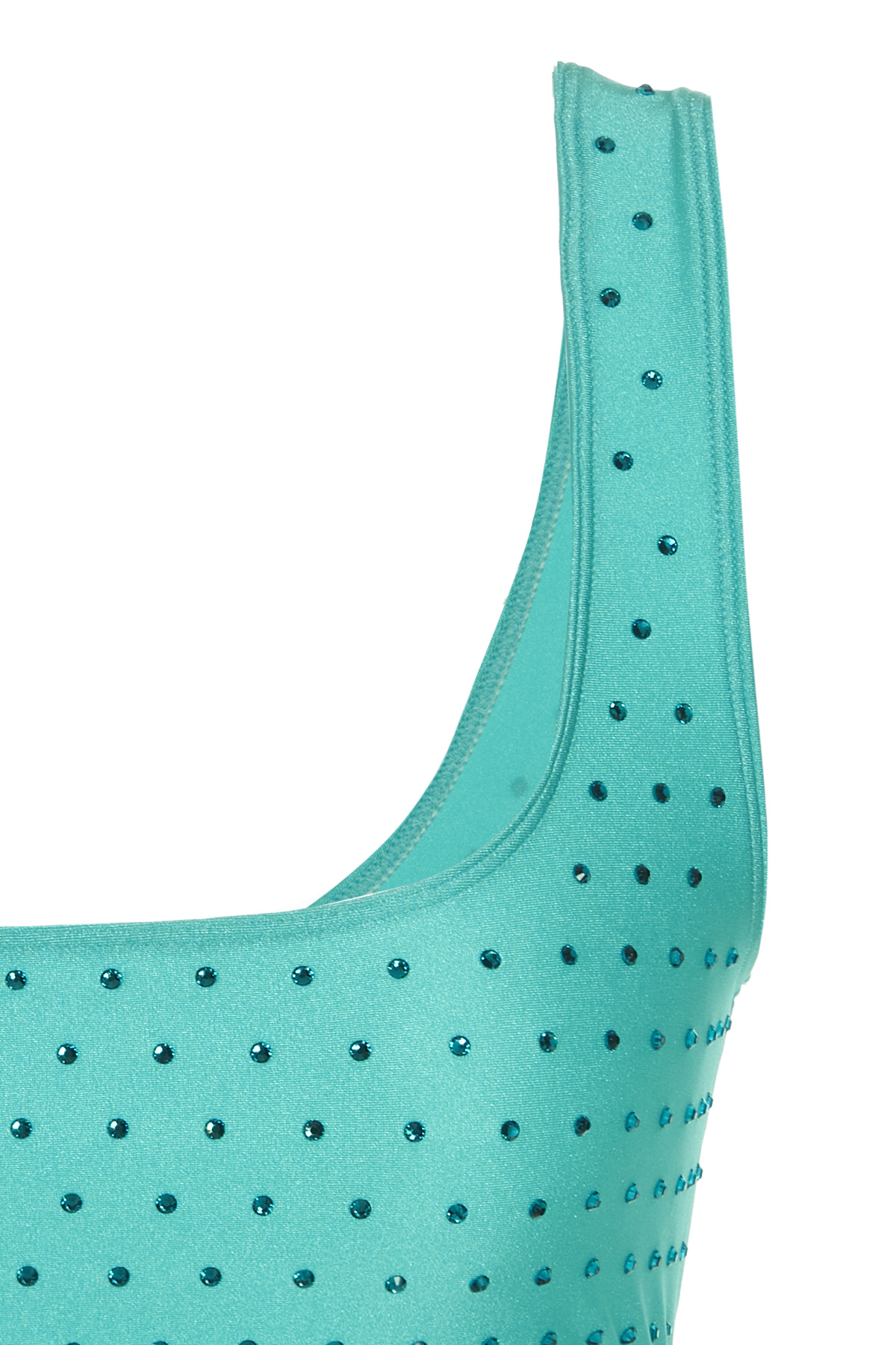 'Hollywood' shiny lycra sleeveless top with sequin applique, shoulder straps and a cropped style.