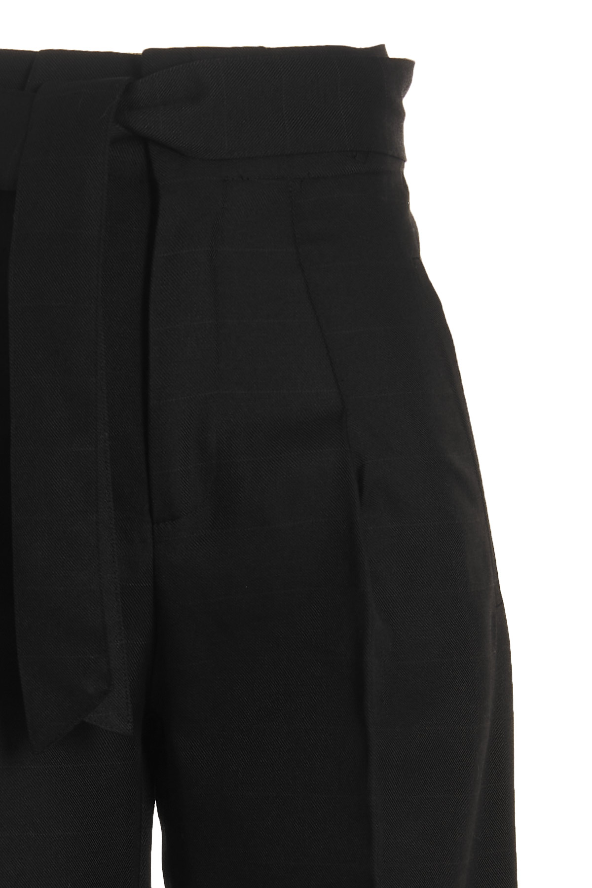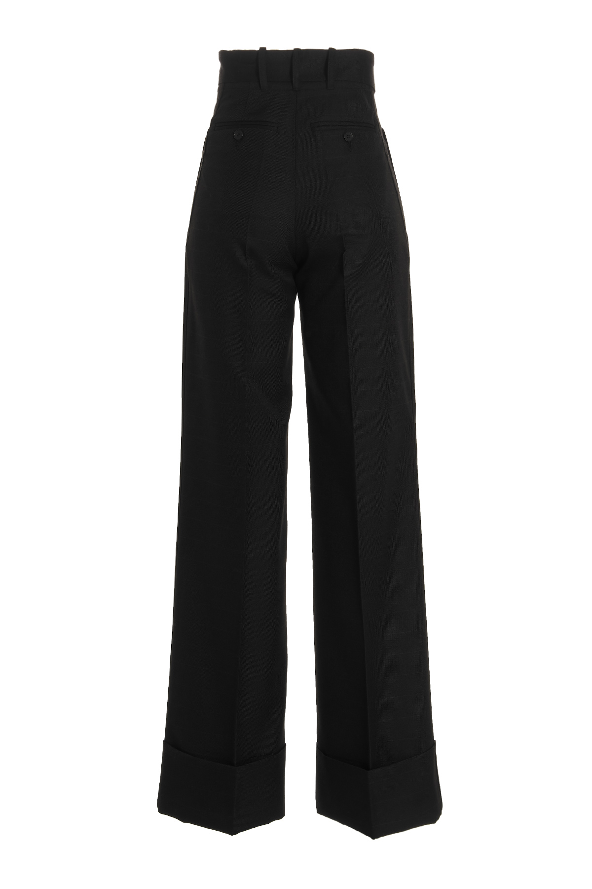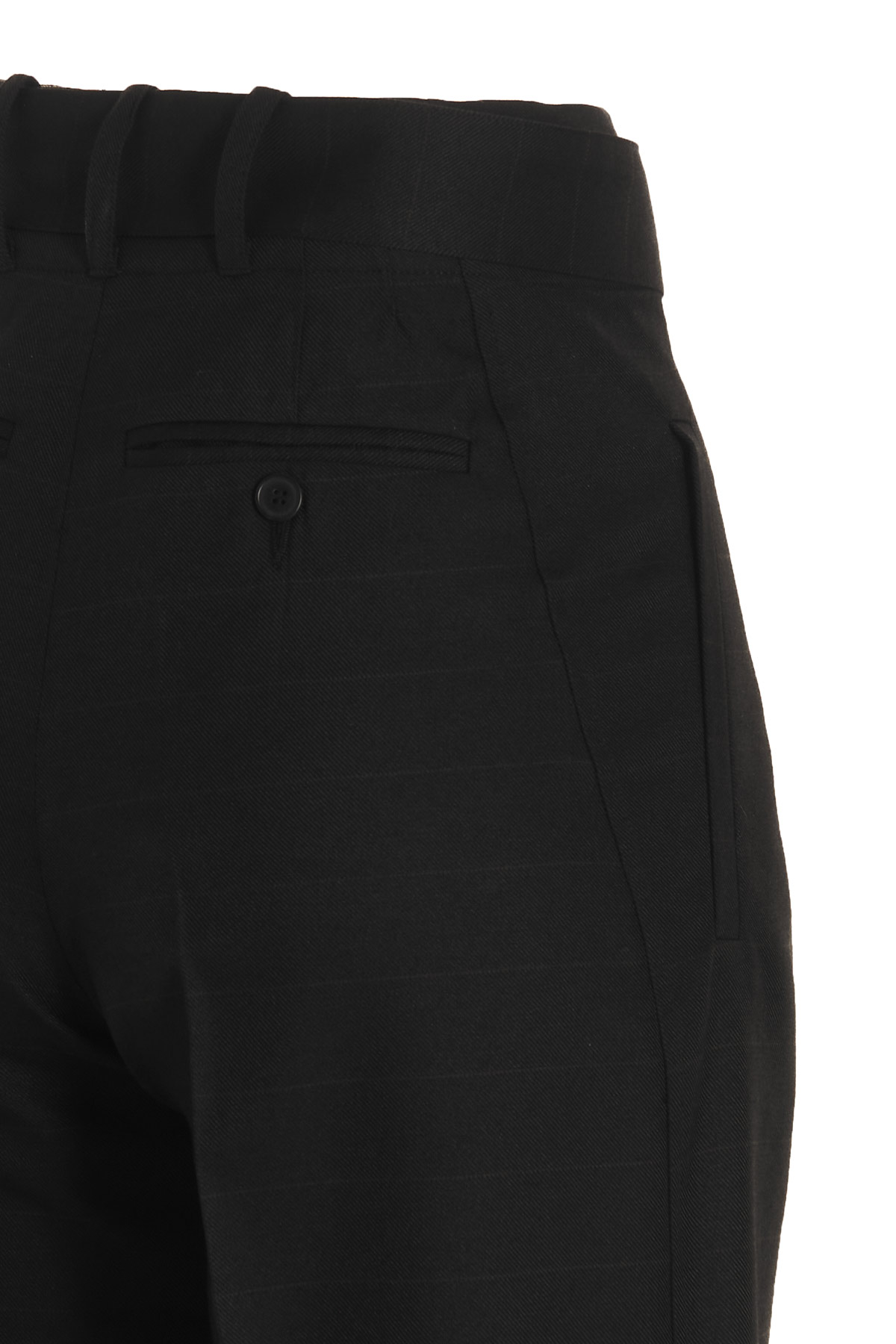 Checked wool blend pants, with a zipper and button closure, a removable waistband, pockets, a wide leg with a mid crease, and a turned-up hem.