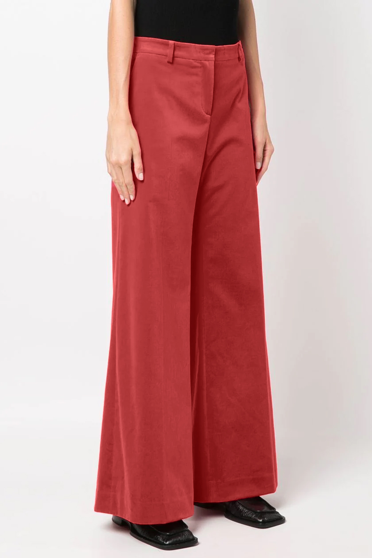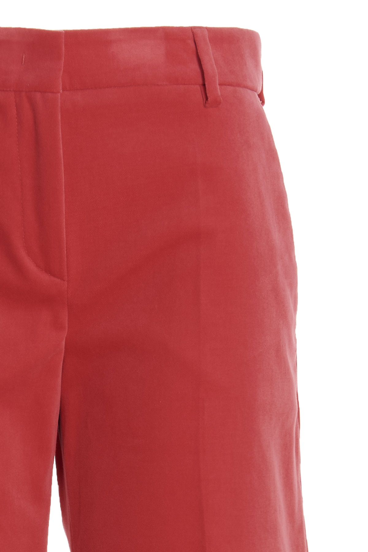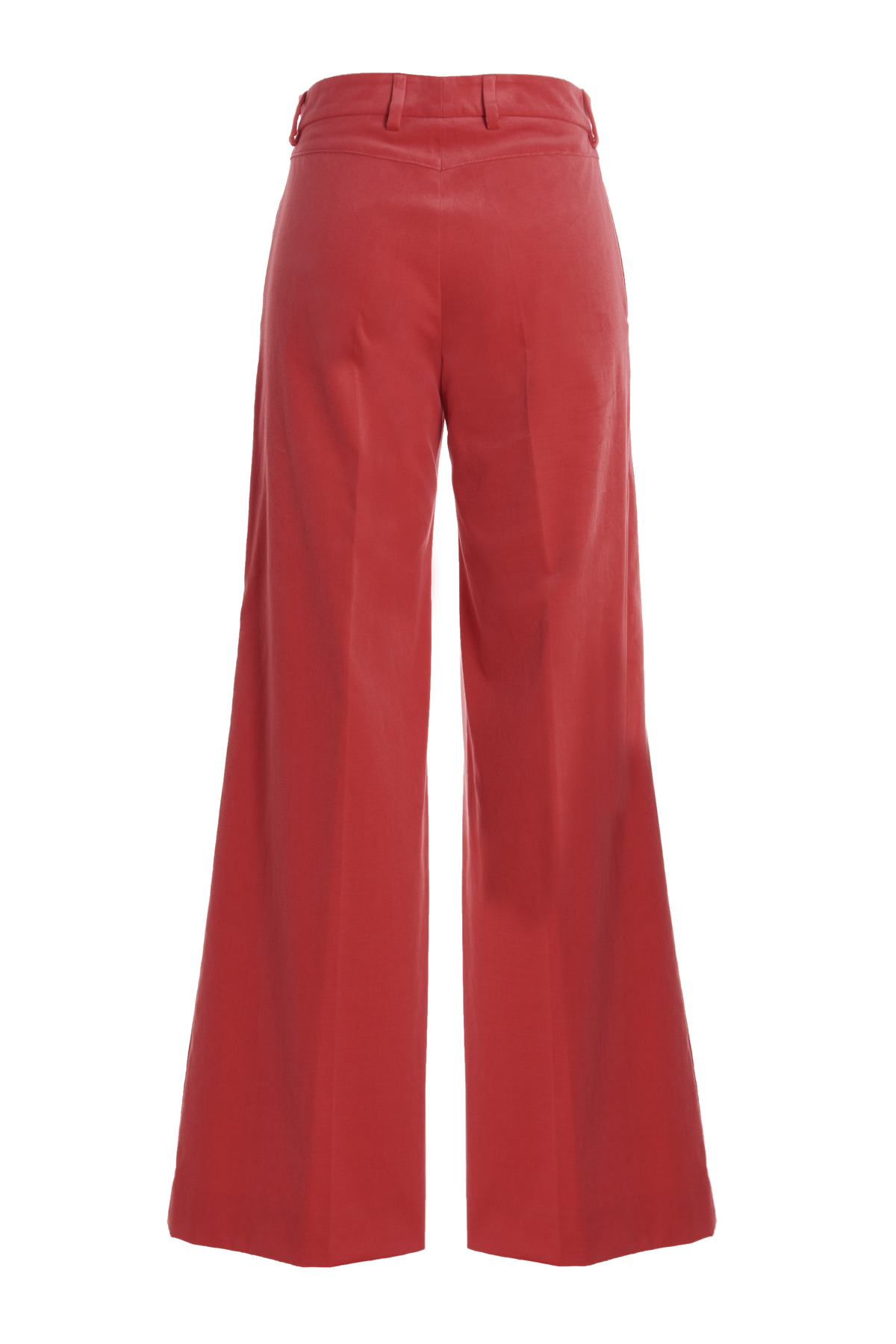 Velvet cotton denim trousers featuring a zip and hook-and-eye closure, pockets, a loose leg with a central pleat.