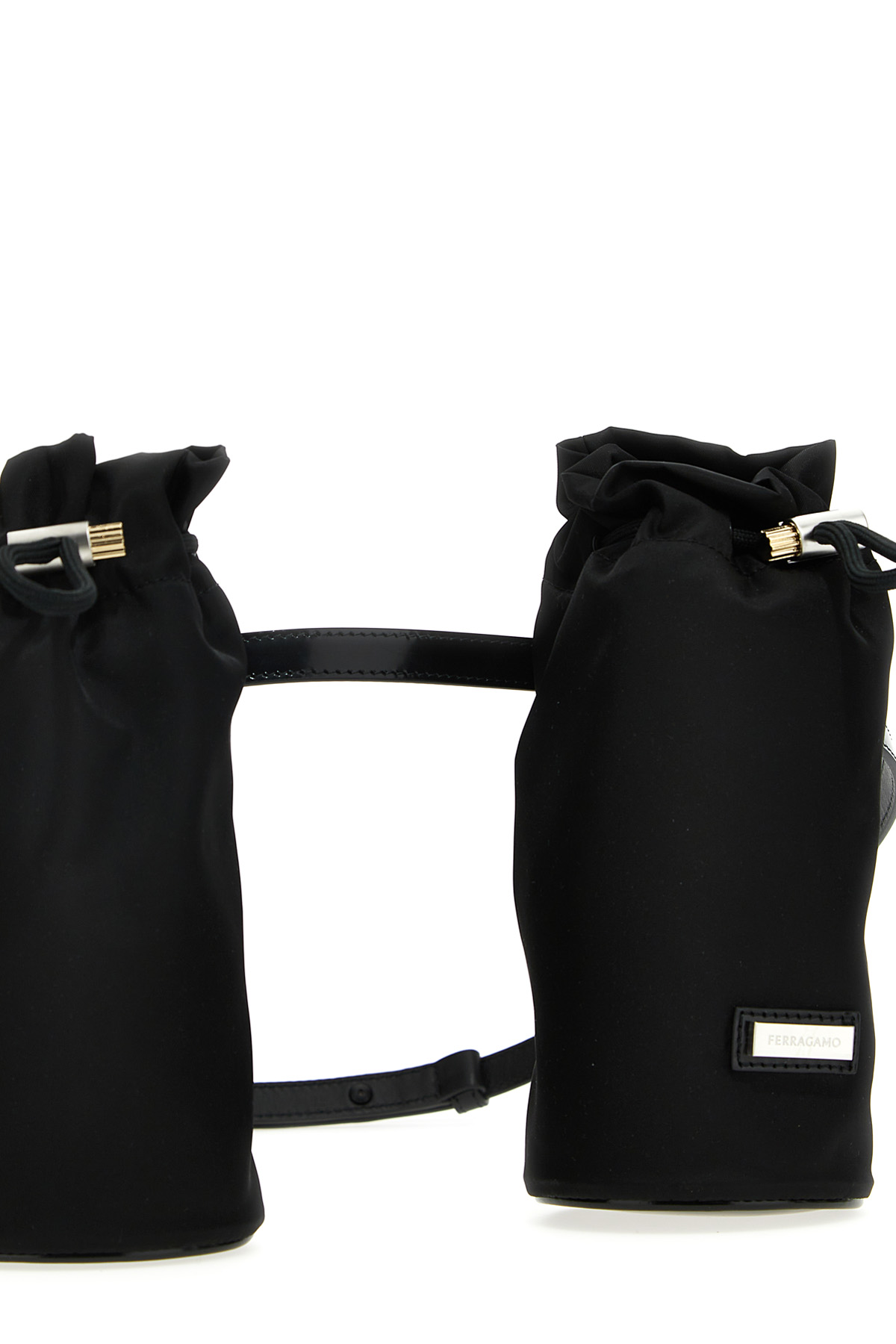Muldycoket' hybrid double bottle-shaped belt bag with adjustable leather belt, ECONYL® structure, leather drawstring and a two-tone stopper with Gancini profile.