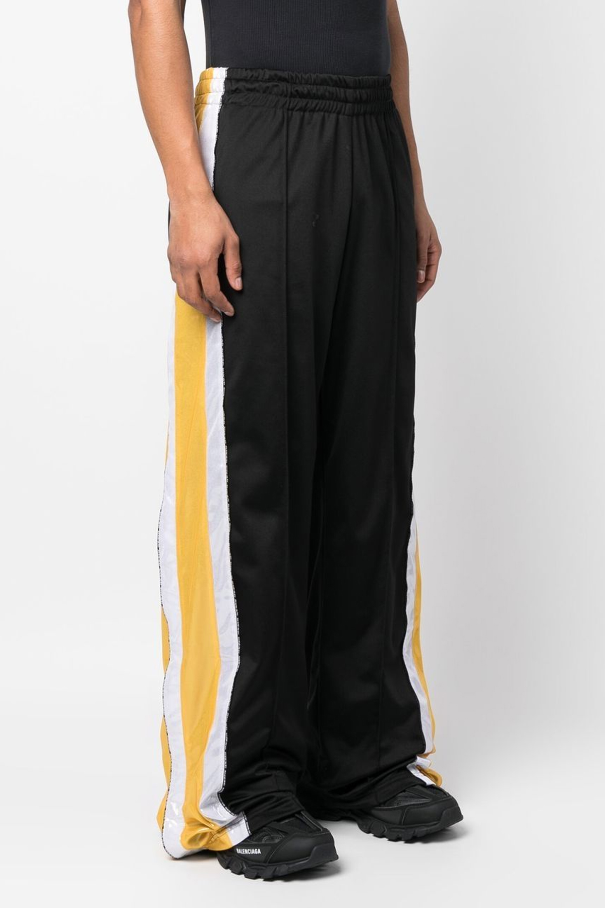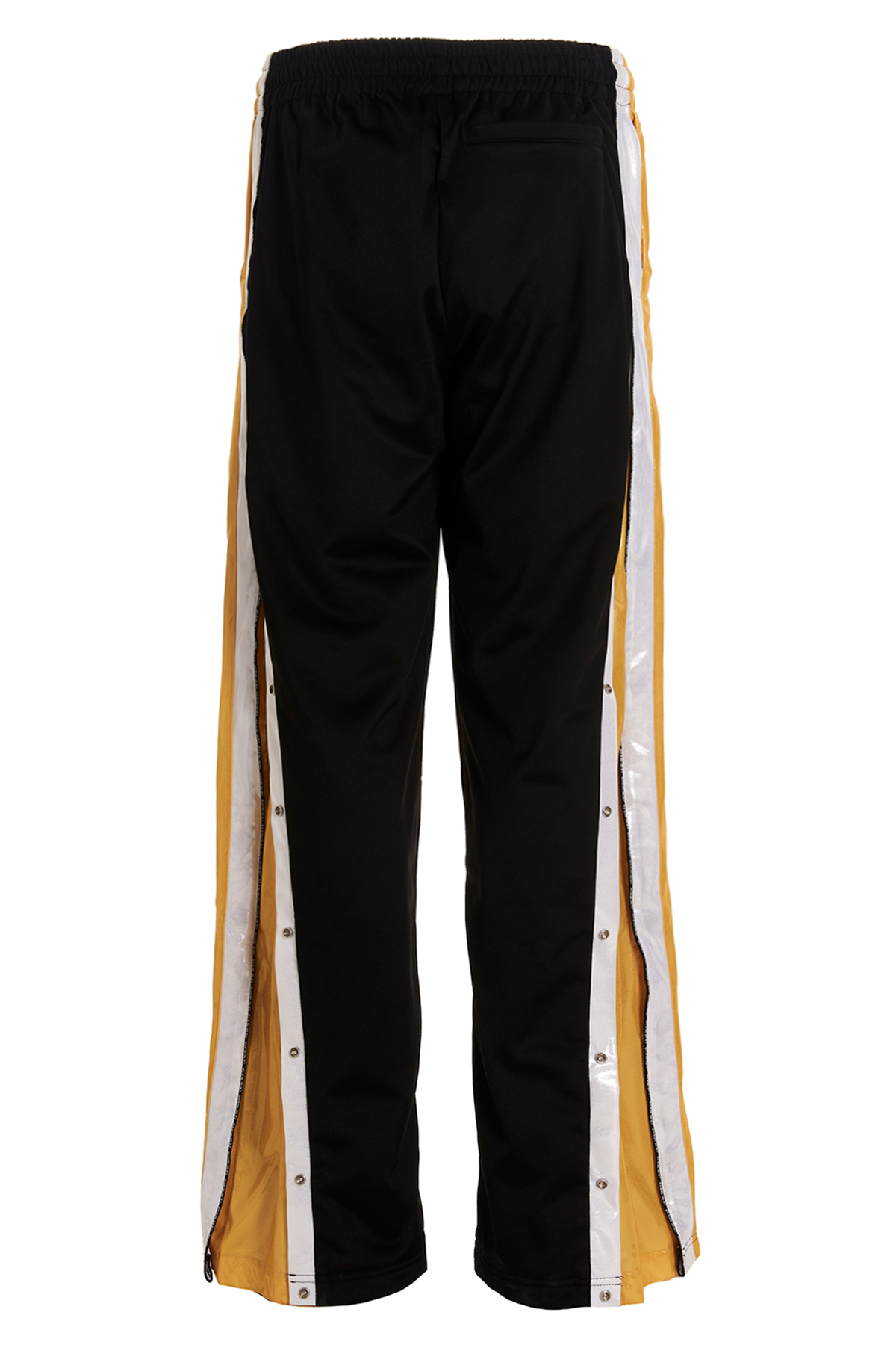 ‘Track' joggers in tech fabric with contrast side bands, adjustable button details on the sides of the leg, logo piping, elastic and drawstring at the waist, pockets.