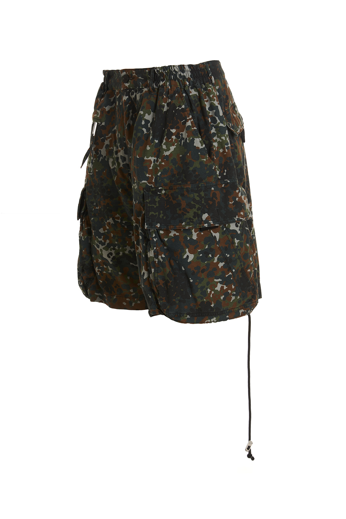 Goth Camo' cotton bermuda shorts with elastic waistband, zip and button closure, multi pockets and a drawstring that can be adjustable on the leg hem.