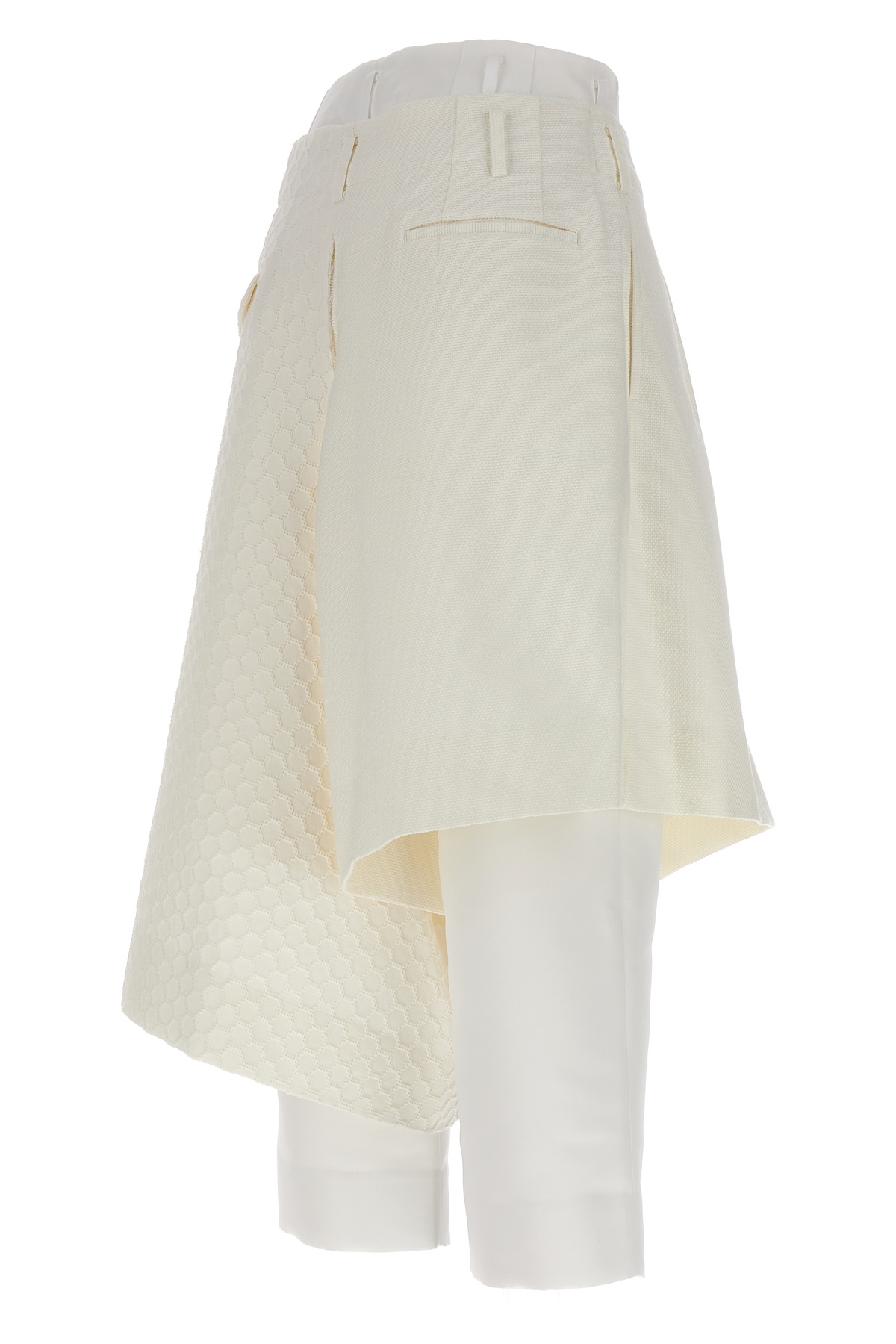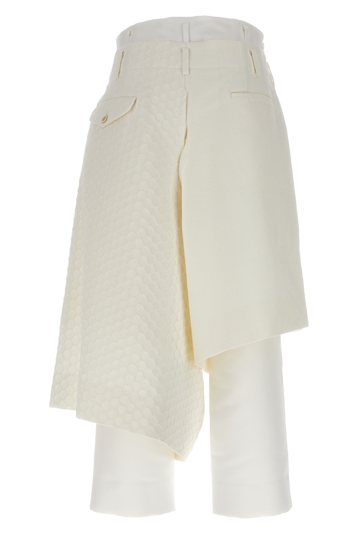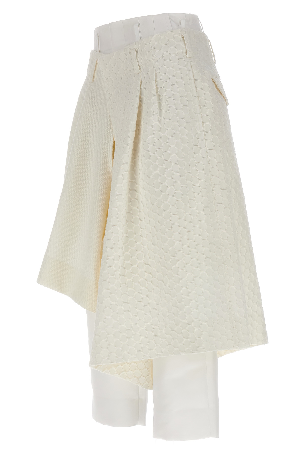 Multi layer and multimaterial bermuda shorts, with zip and hook-and-eye closure, pockets.