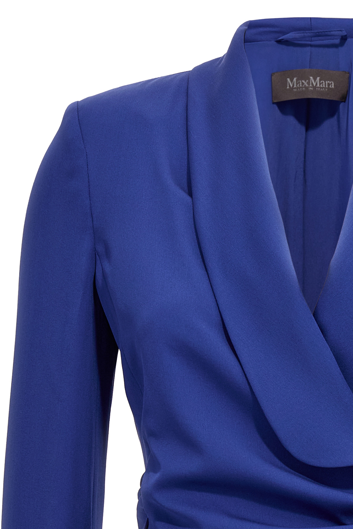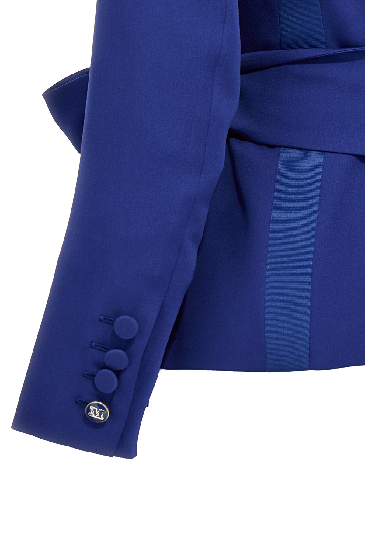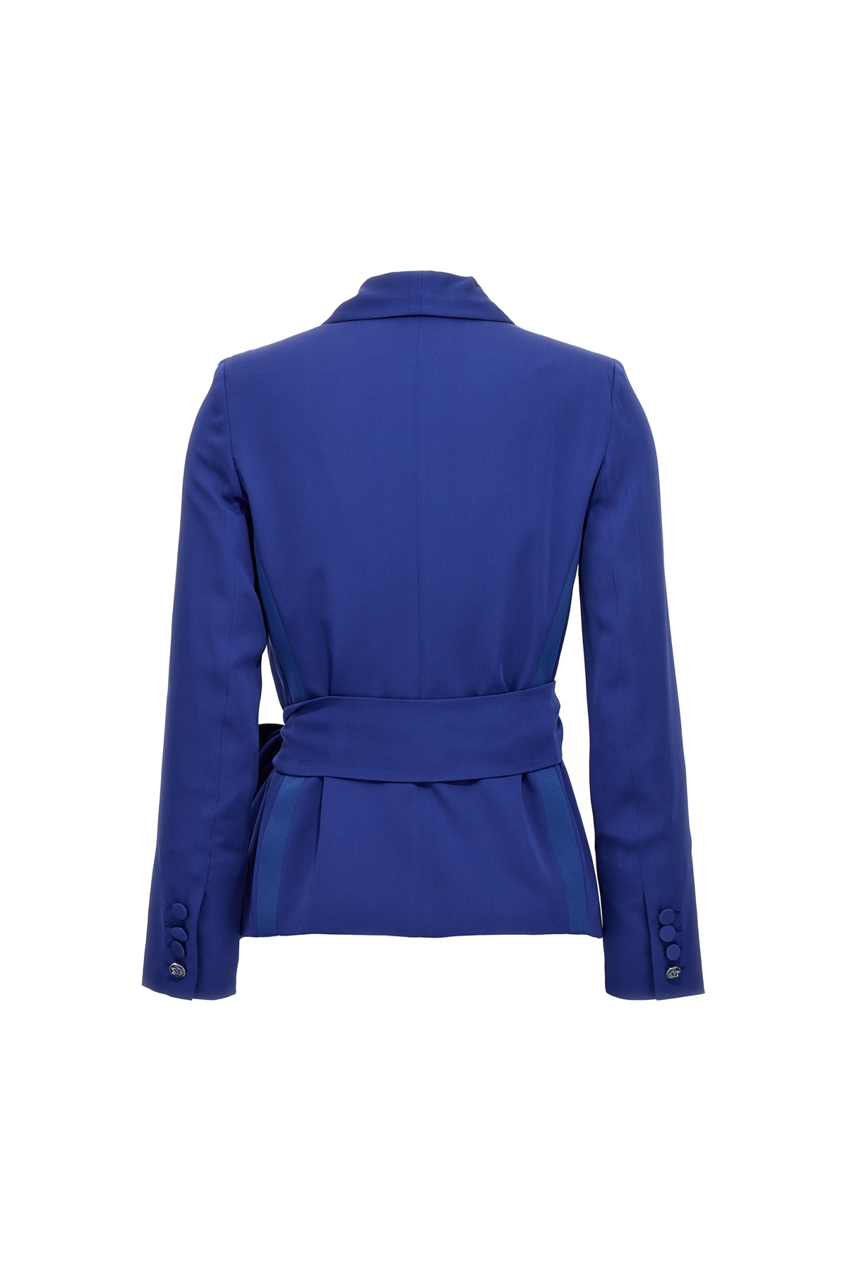 'Nylon' tuxedo jacket with silk cashmere charm, lapel collar, side concealed concealed band and draped fusciacca fastening at the waist.