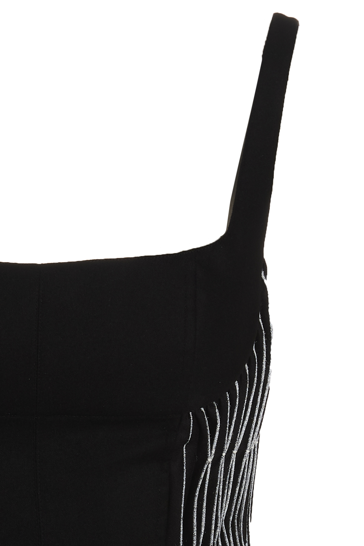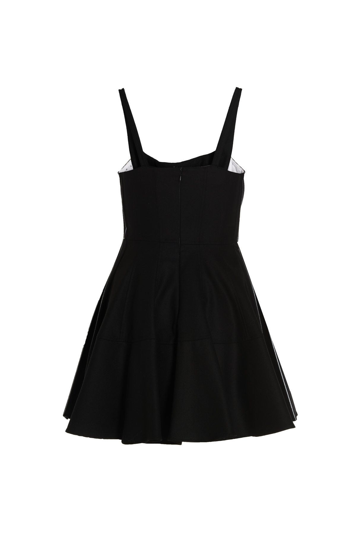 Flannel dress with pleats at the sides and contrast detail, a squared neckline, thin shoulder straps, and a back zipper closure.