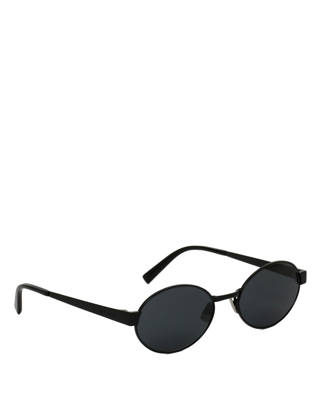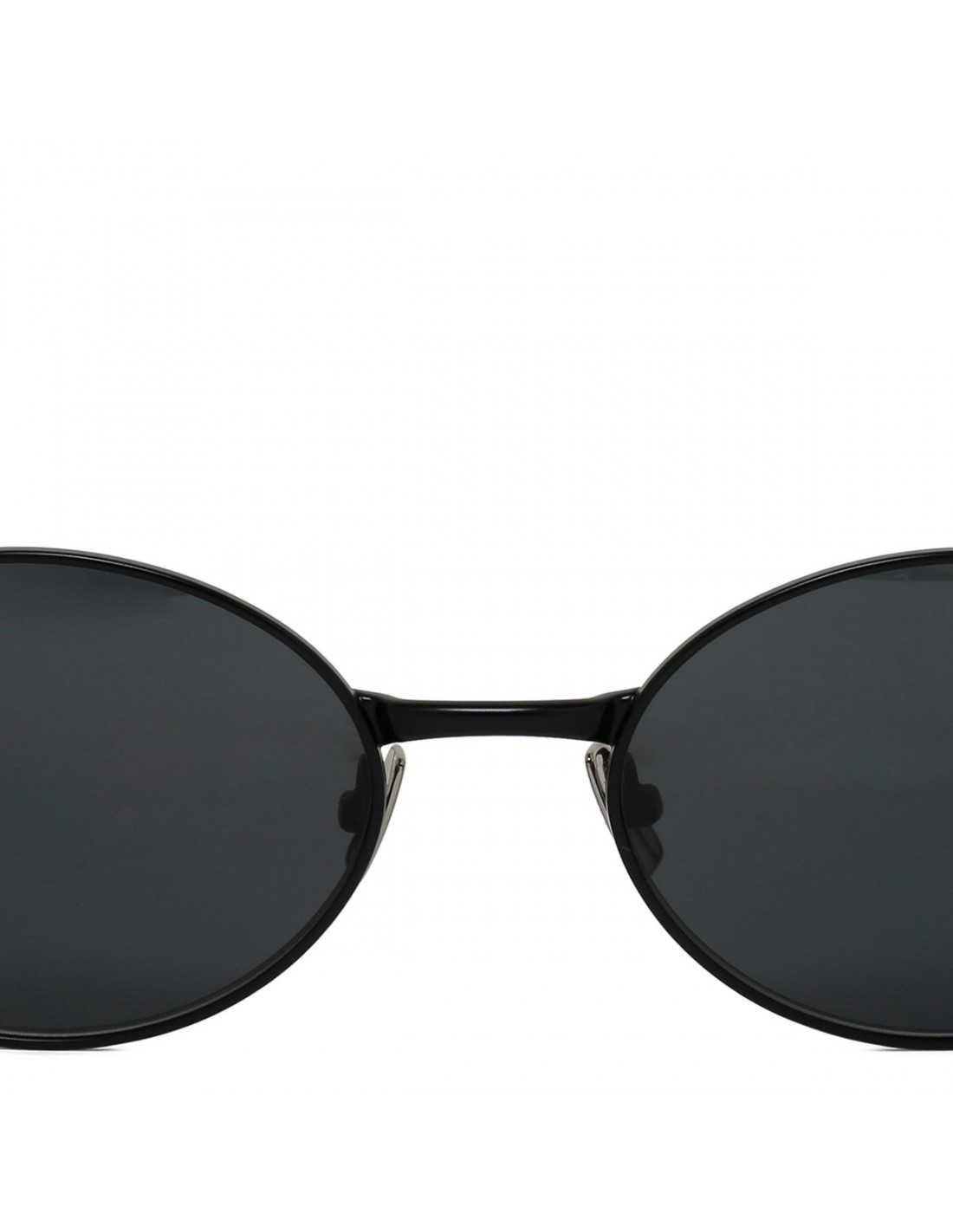Black metal SL 692 sunglasses from Saint Laurent featuring rounded frame, metal nose pads, logo engraved temples, black nylon lenses with 100% UVA/UVB protection.