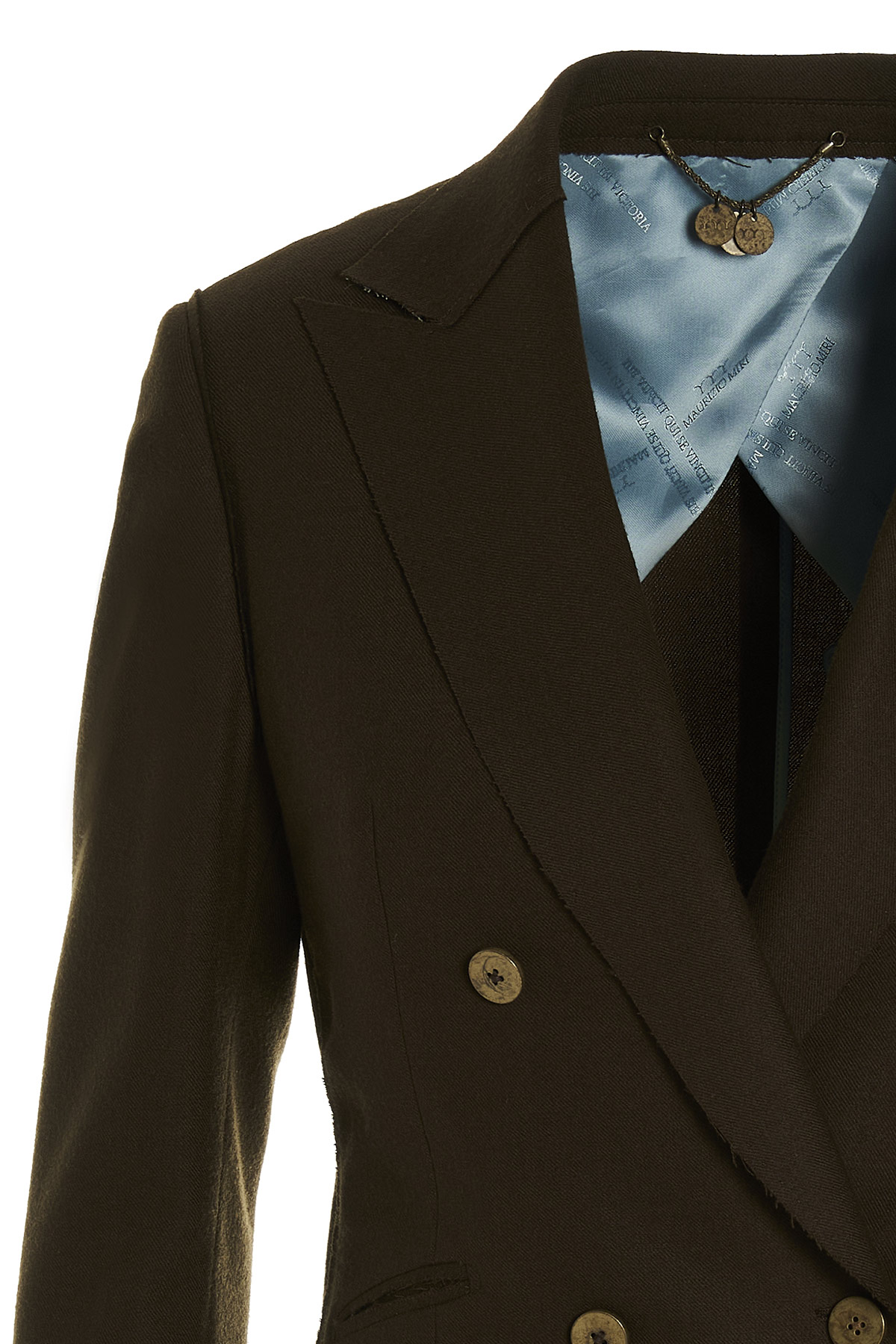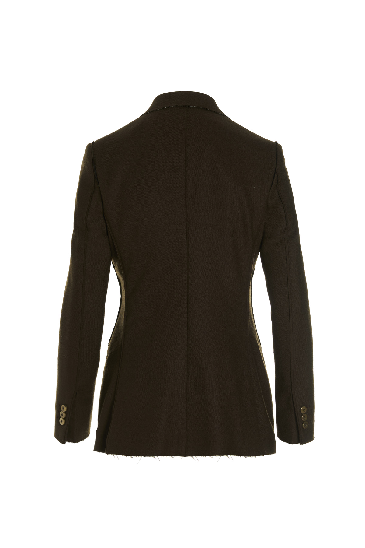 'Stevie' double-breasted wool blazer with button closure, pockets, long sleeves, vents at the back.