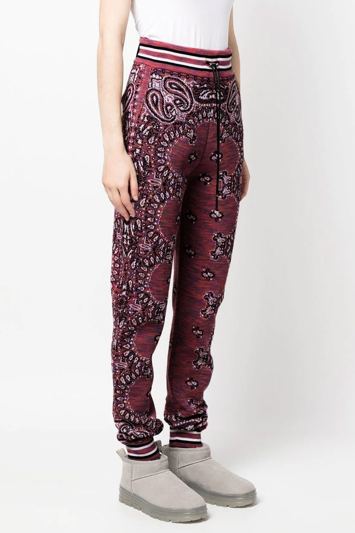 'Space Dye Bandana’ cotton knit joggers with an all-over pattern, drawstring and elastic at the waist, pockets and elastic leg bottoms.