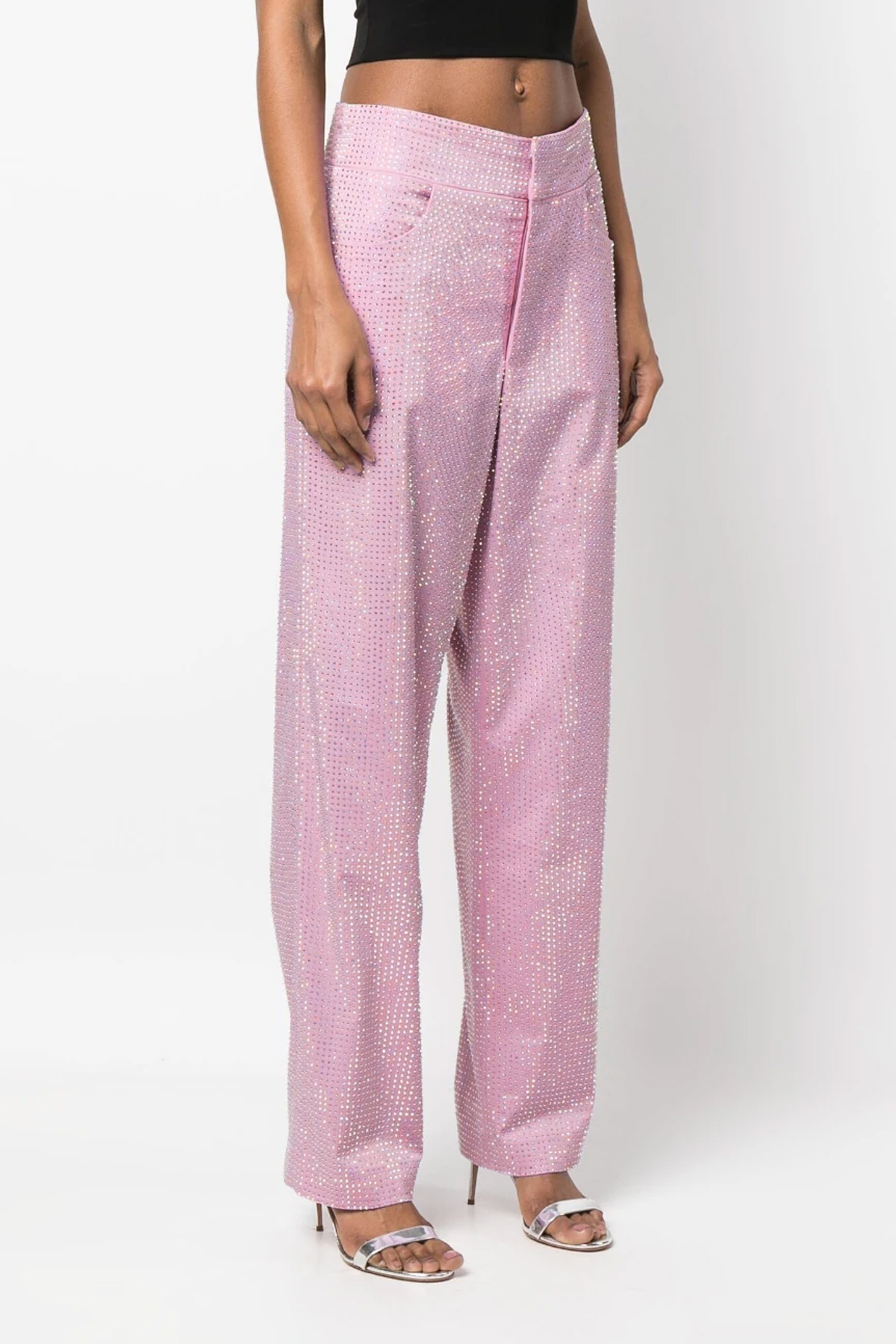 Pants in a stretch cotton blend embellished with ll-over crystals, high waist and a zip closure.