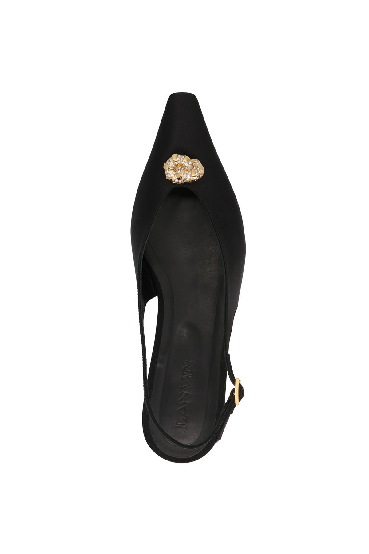 'Swing Back' satin slingbacks with jewel applique on the toe and a leather sole.