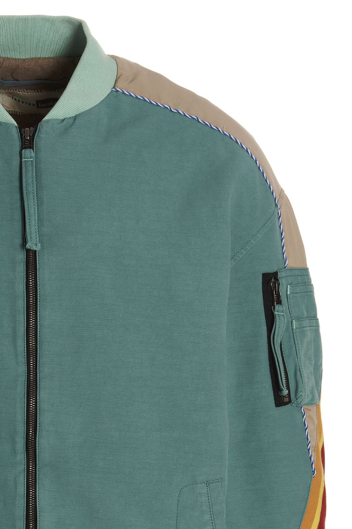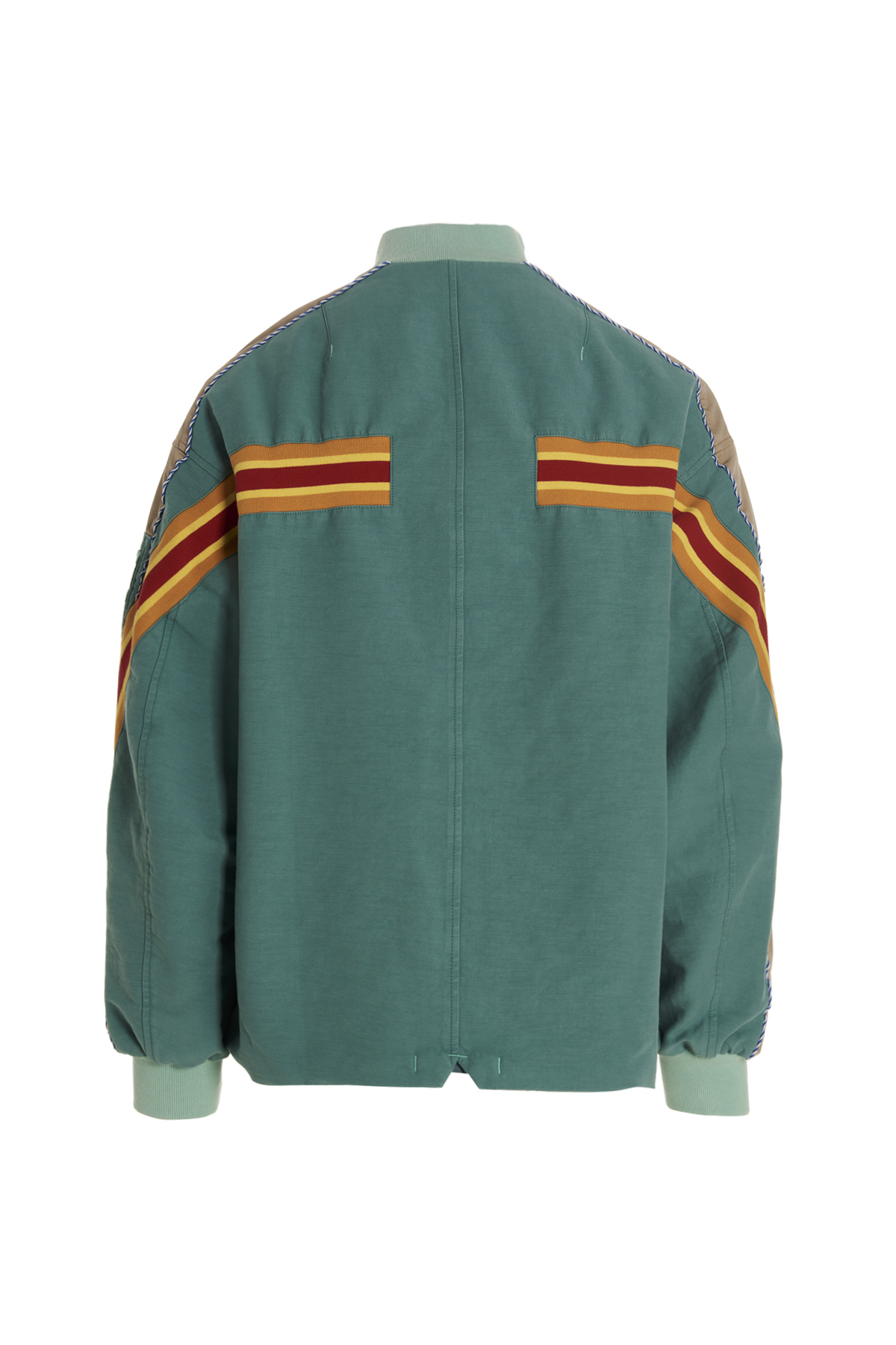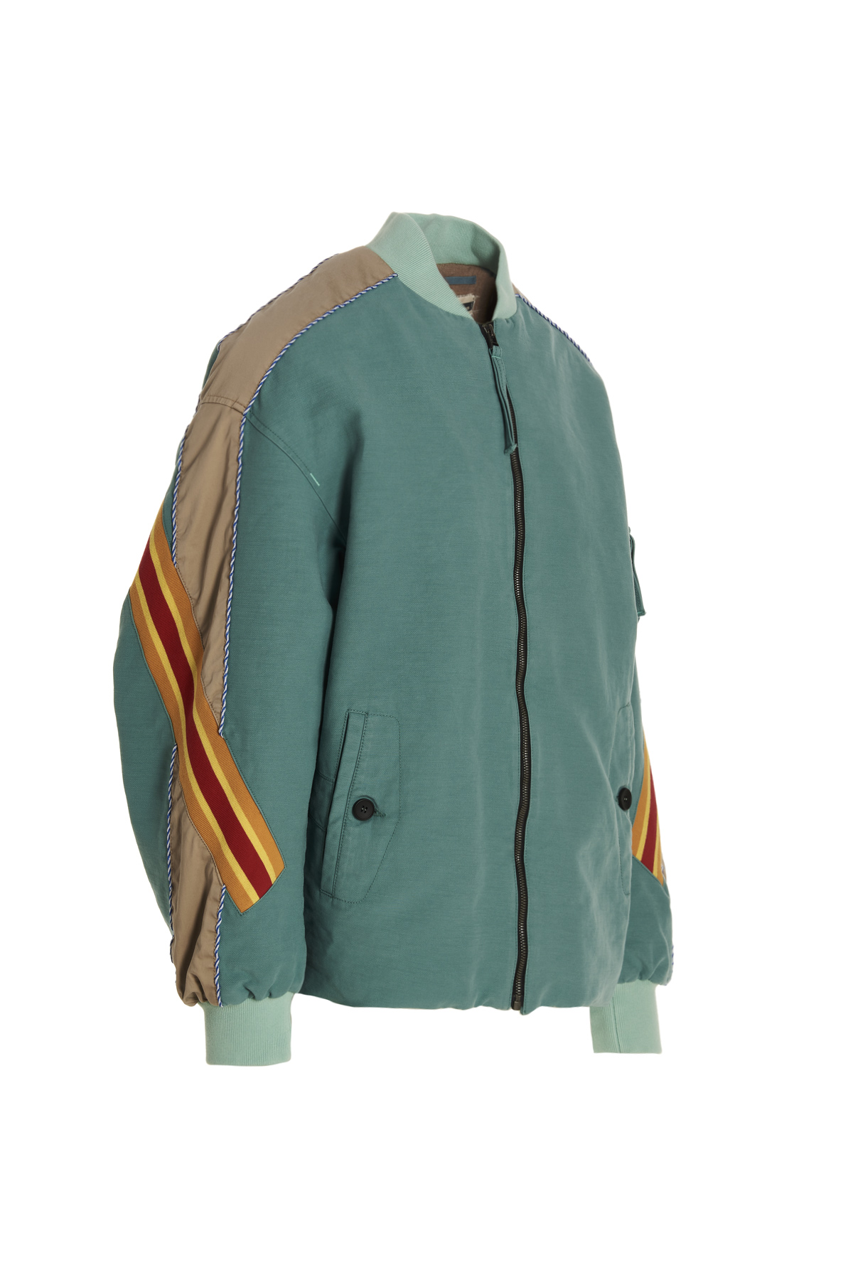 Padded cotton bomber jacket with contrasting bands, featuring pockets and a full zipper closure.