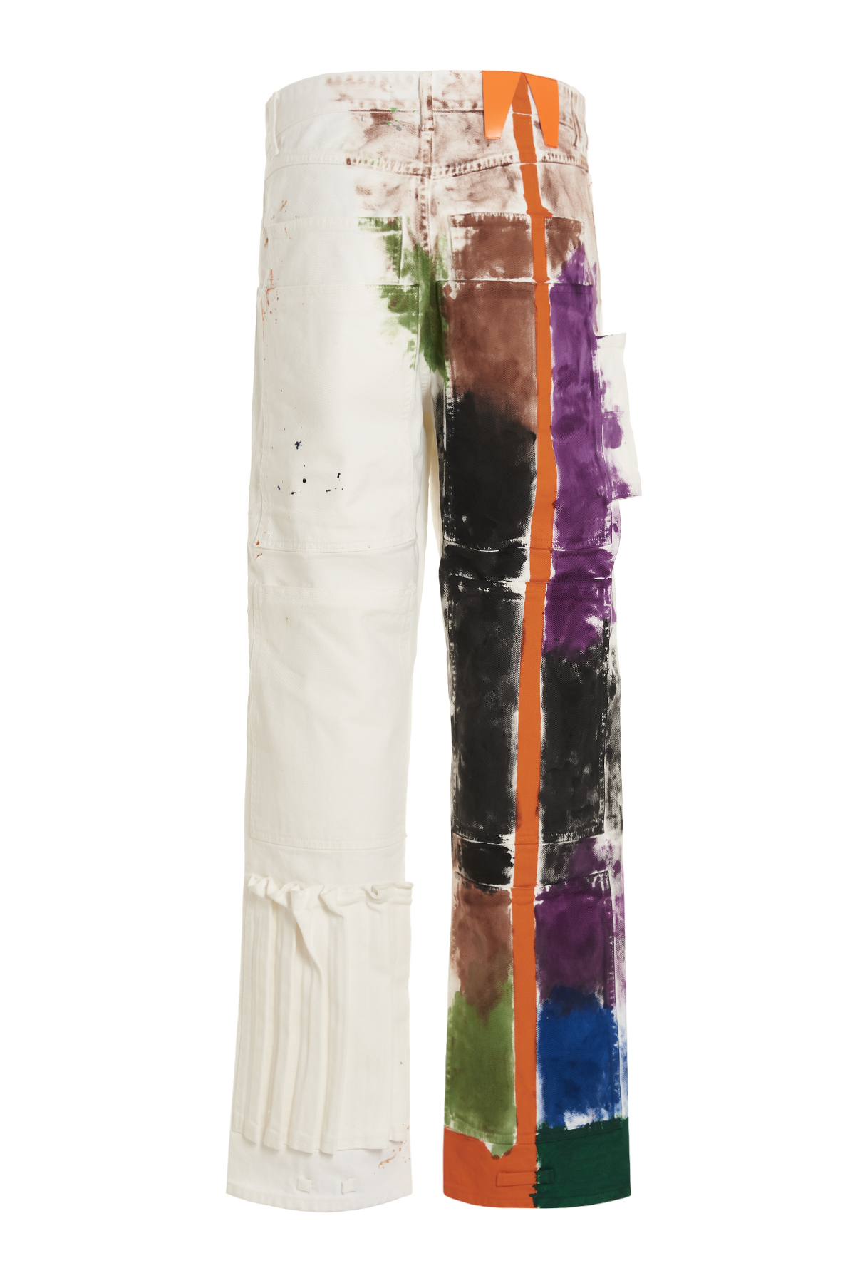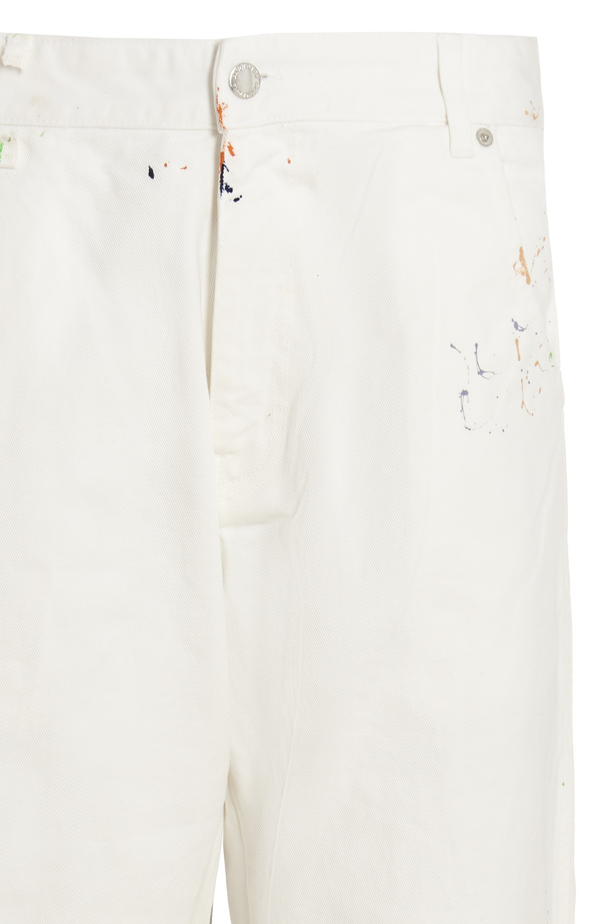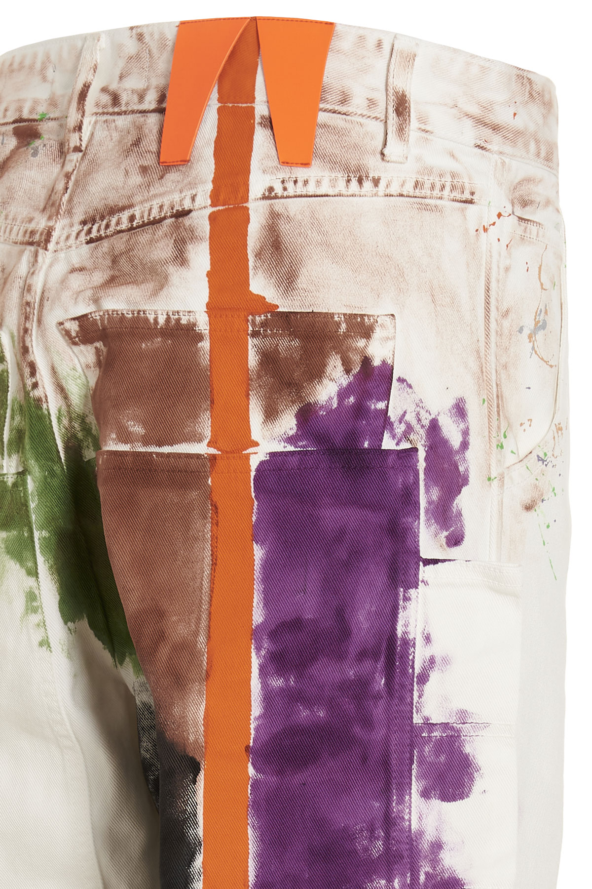 'Indron' cotton denim jeans with zip and button closure, pockets, and all-over multi paint details.