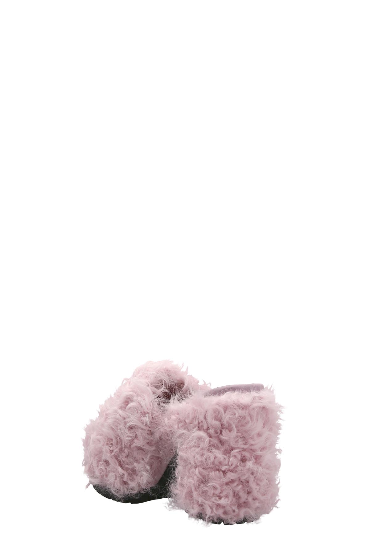 'Kalgan' faux fur mules with chunky heel, platform, and rubber sole.
