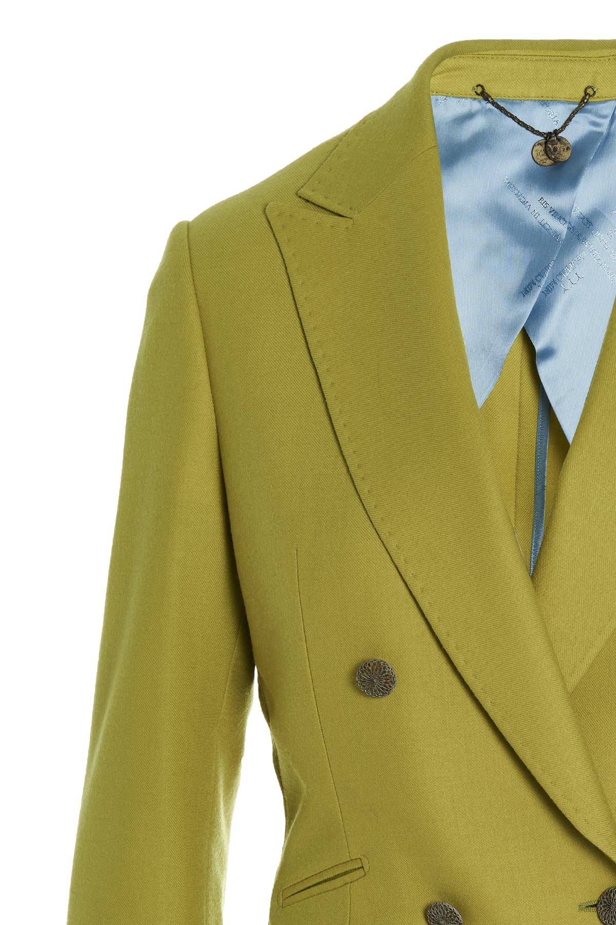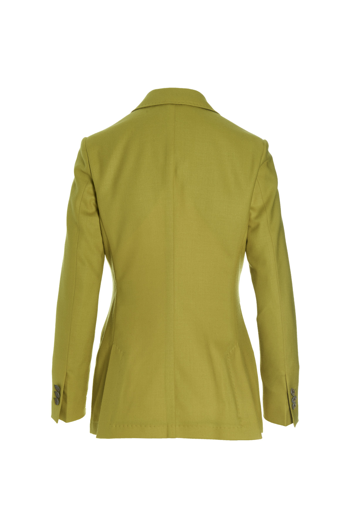 'Grace’ wool blazer jacket featuring a double breast style, a button closure, pockets, long sleeves and vents at the back.