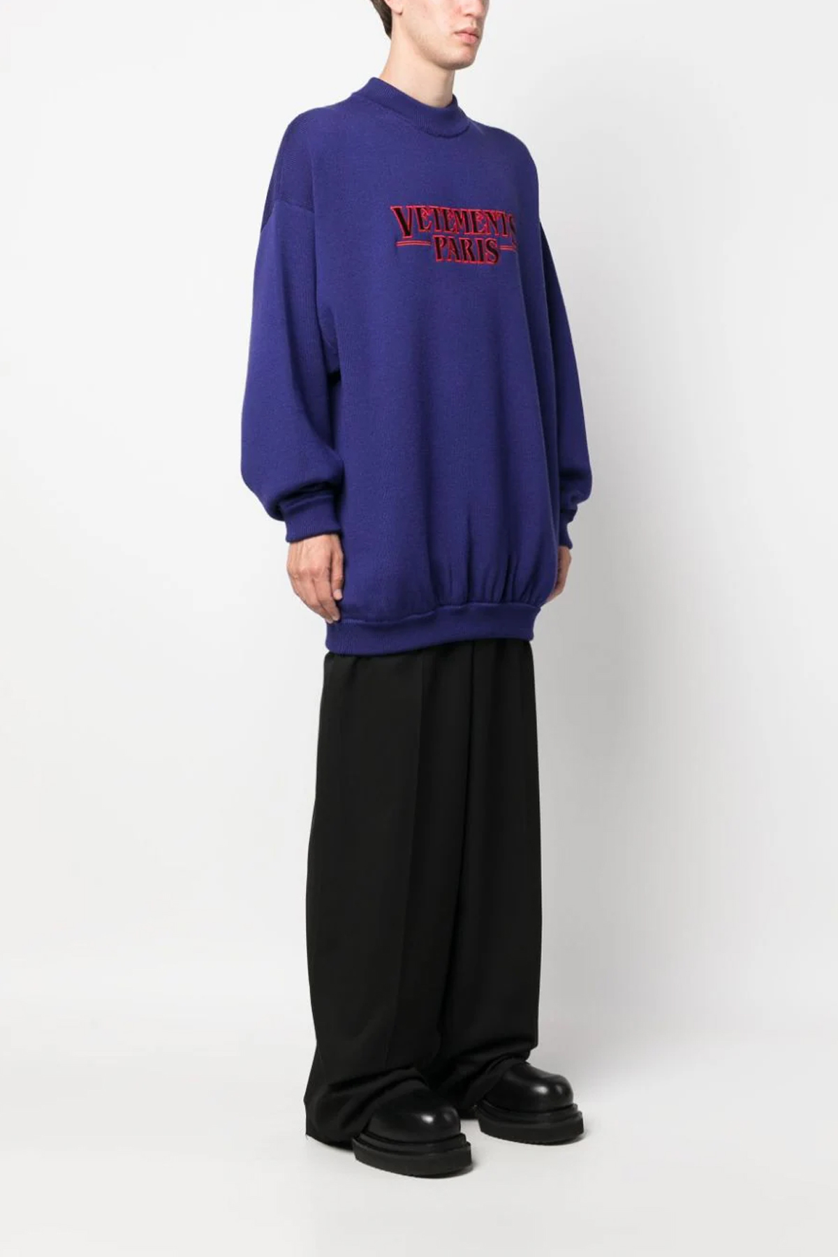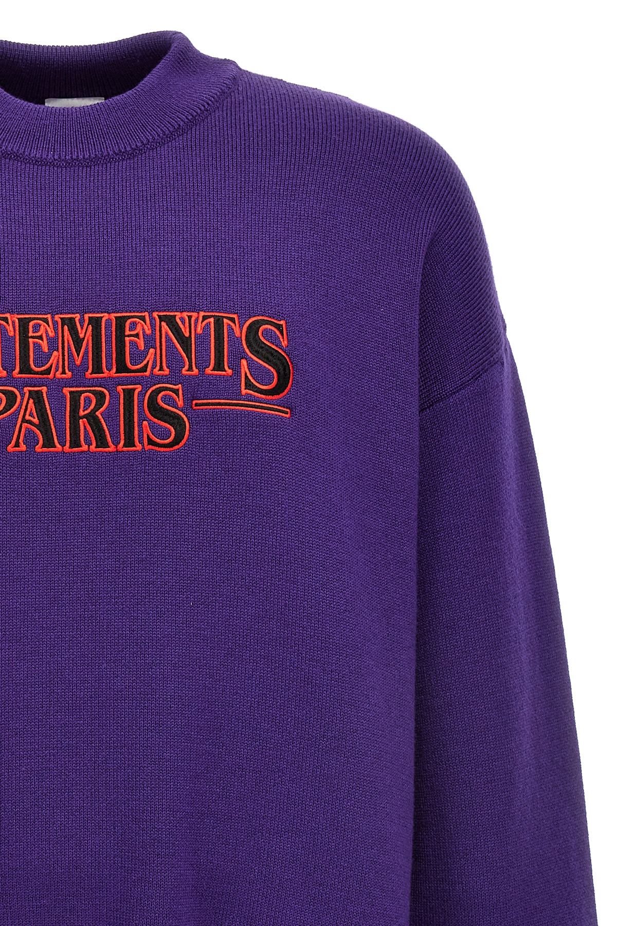 Vetements Paris' wool, crewneck sweater with logo embroidery.