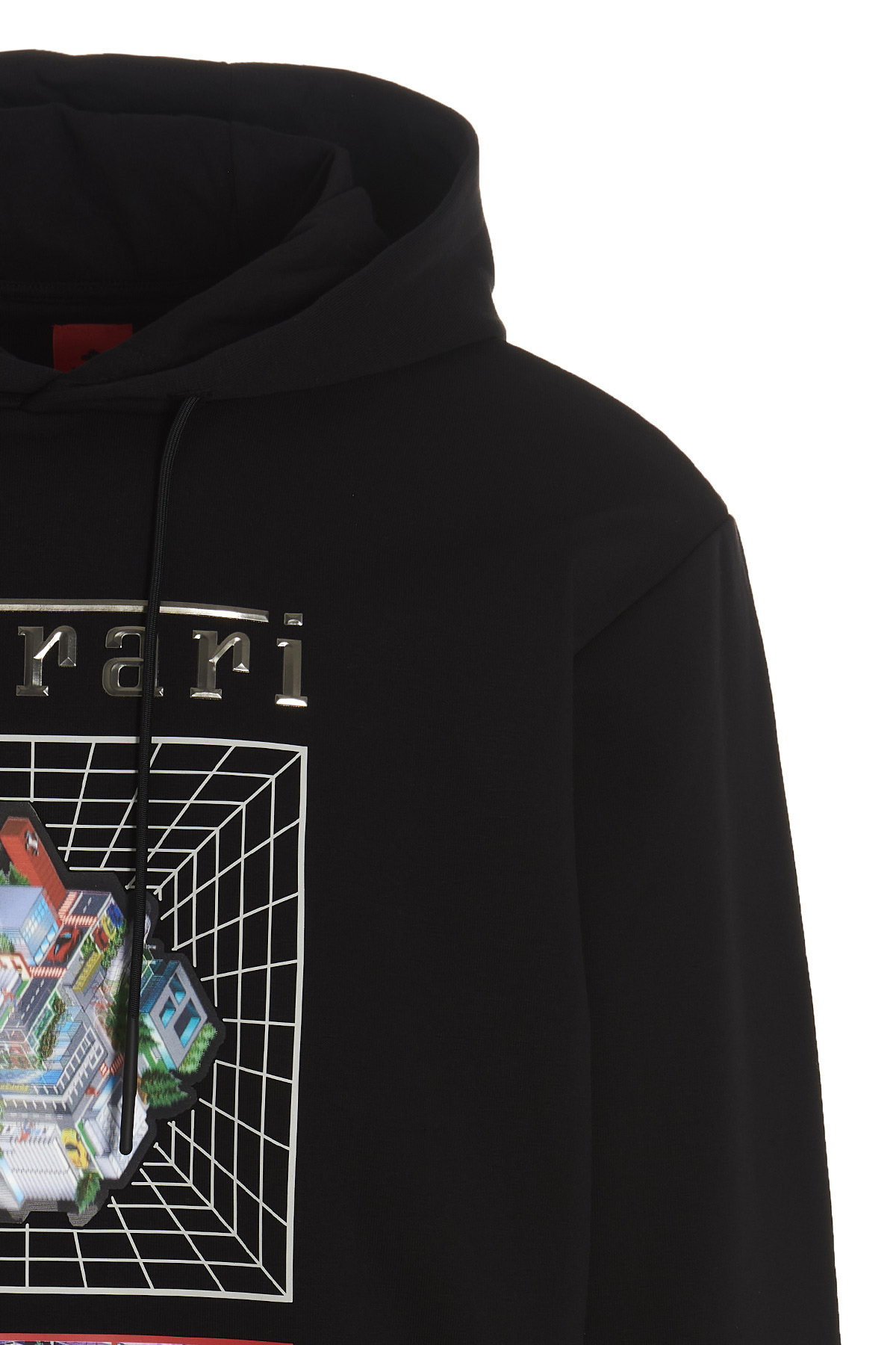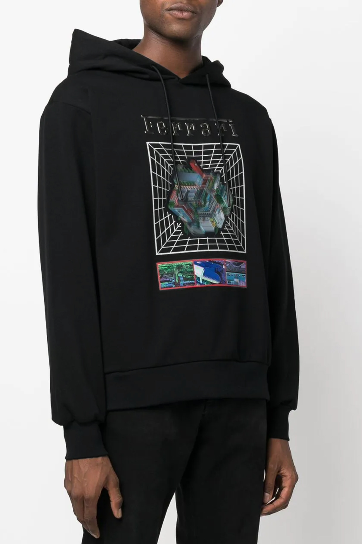 'Maranello cube' cotton hoodie with front logo print and image changing detail.