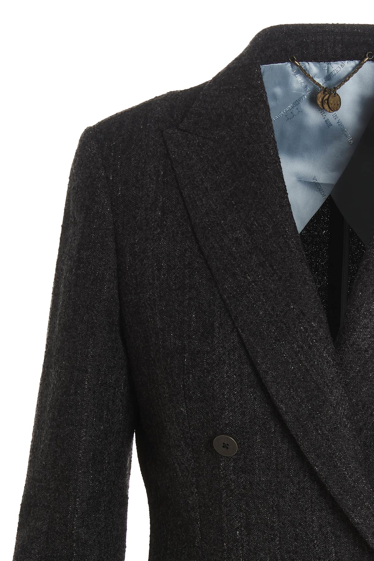 'Grace' wool blend blazer with double-breasted button closure, pockets, back splits.
