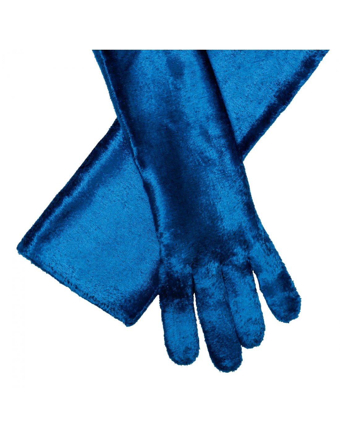 Blue shiny velvet long gloves from Alaia. Knitted in a high shine chenille yarn.