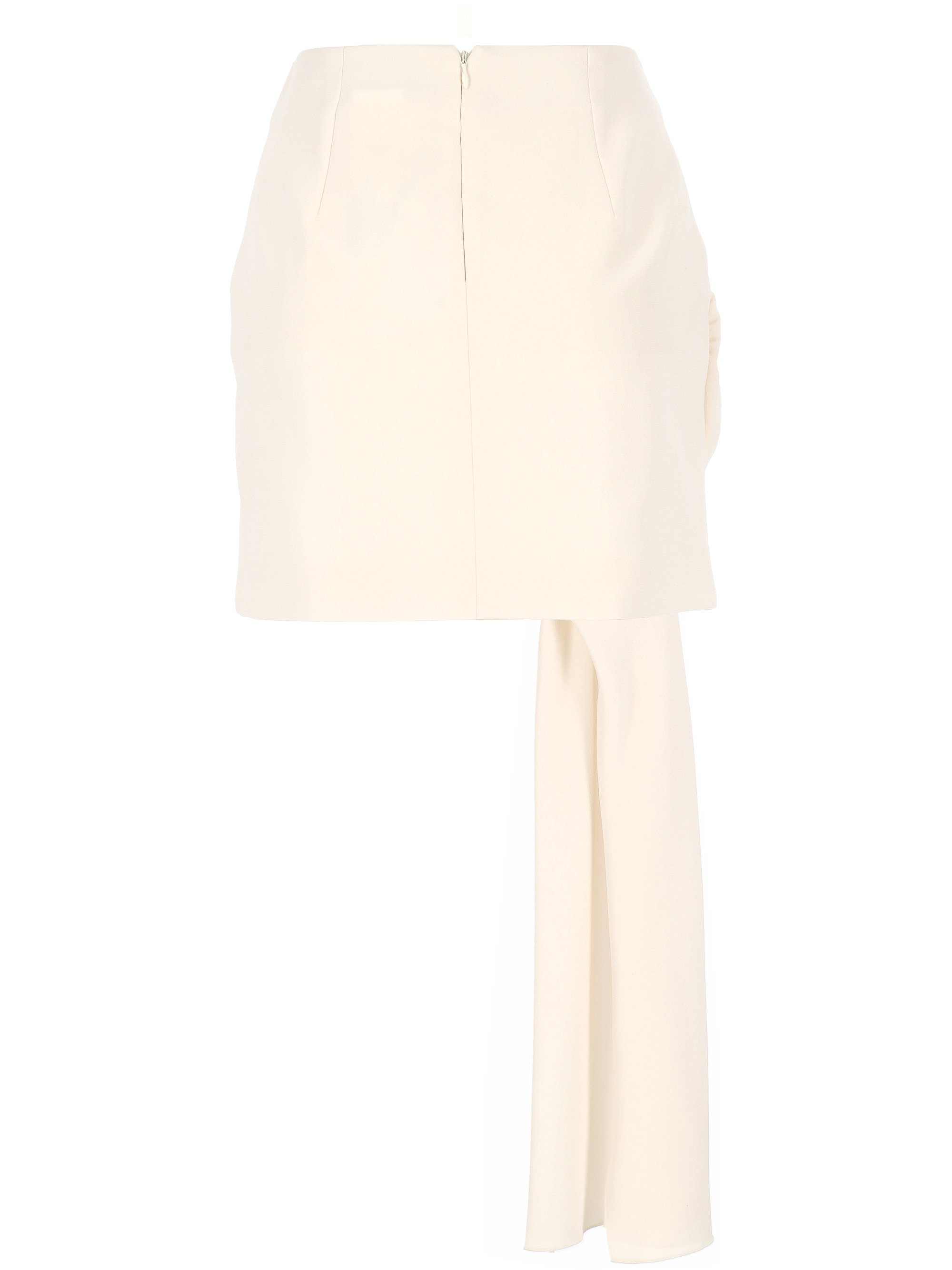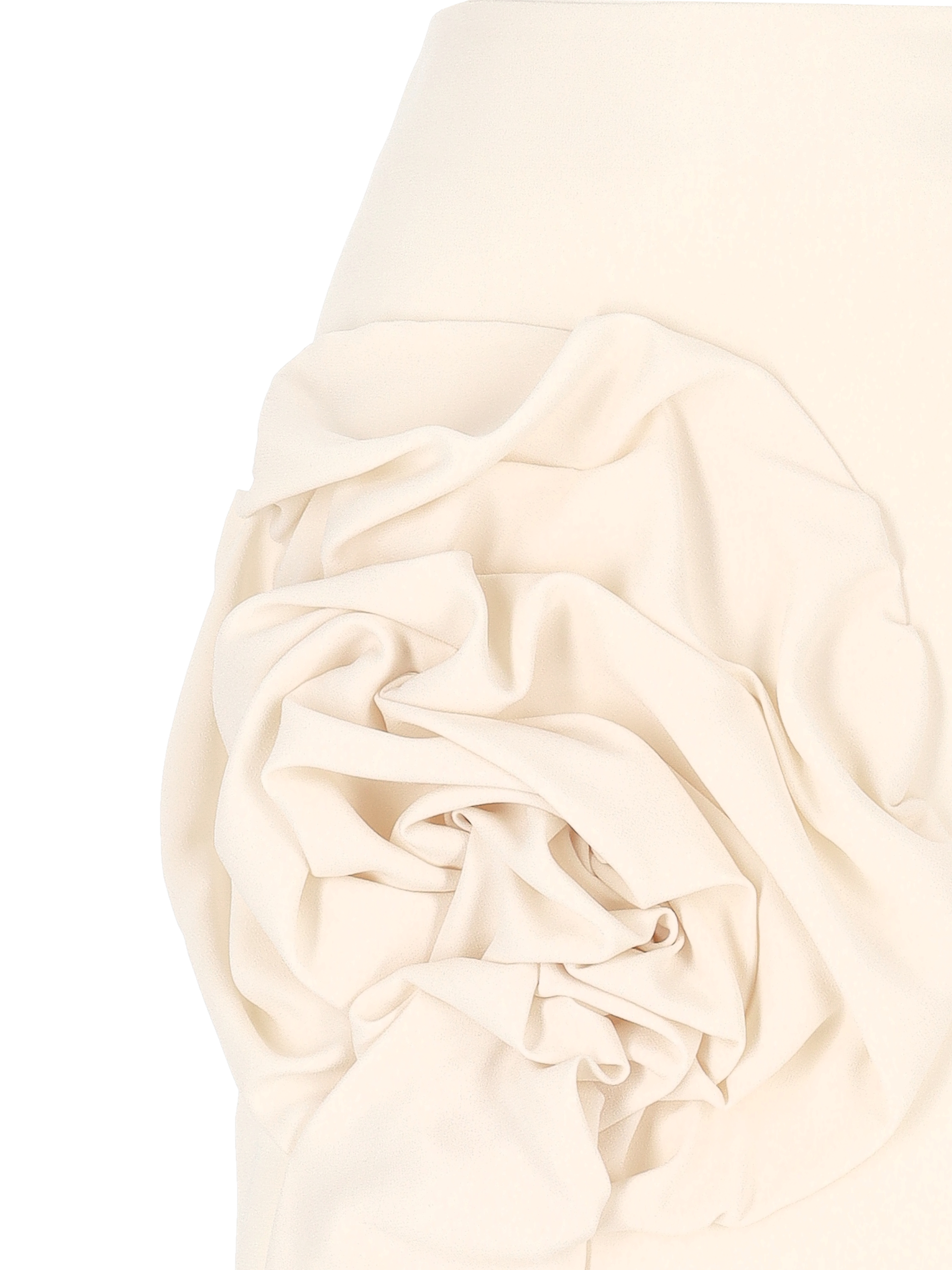 the pink maxi draped on the side adds a romantic and bold note perfect for the contemporary woman This garment is part of the Emily Ratajkowski x Marella collection Mini skirt in adhesive triacetate Straight fit Back zip closureMaxi roseshaped drapery on the front with hanging panelsGarment lined in crepe de Chine