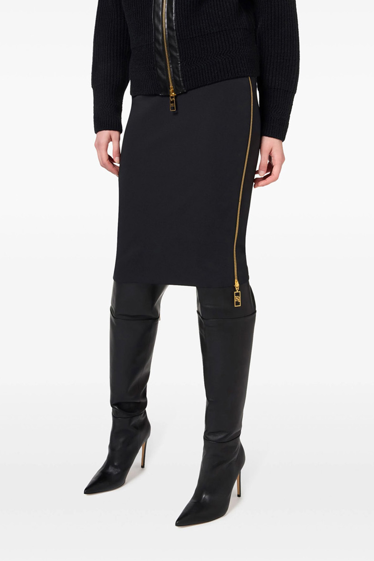 Midi skirt in double stretch crepe, zip detail with logo puller on both sides.