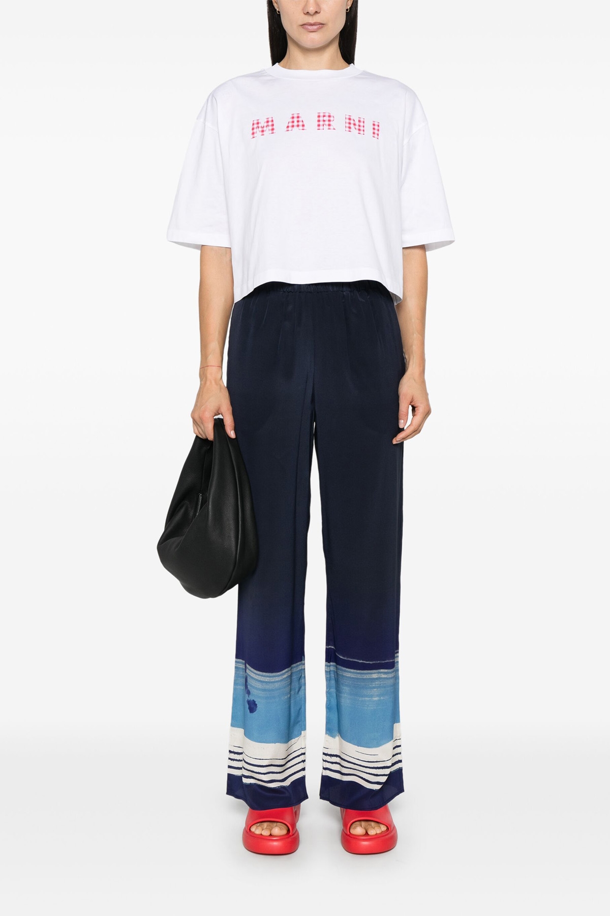 Cotton, crewneck 'cropped' t-shirt with front logo print and short sleeves.