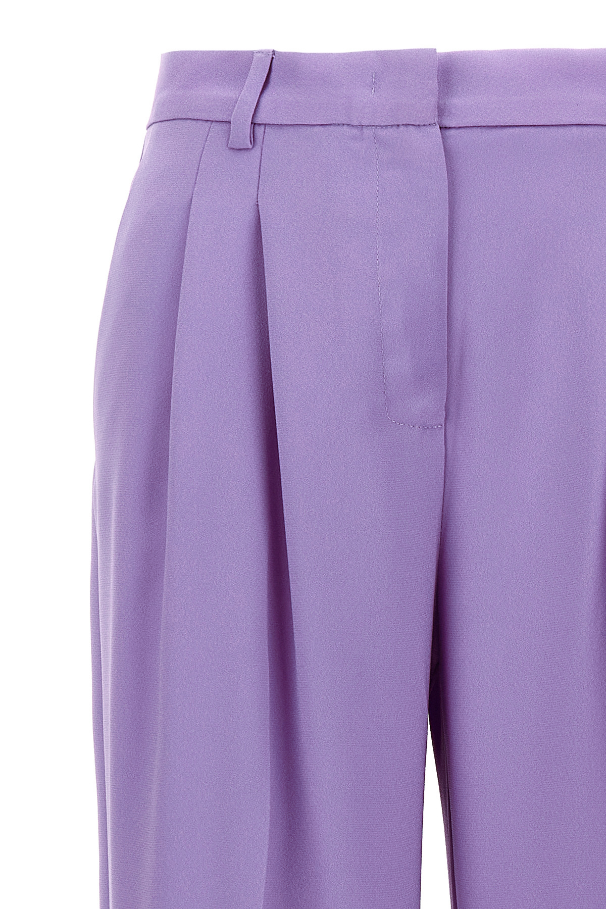 'Gladys' satin crepe pants, hook and button zip closure, pin tucks and stretched pleat, wide leg and turned-up hem, pockets.