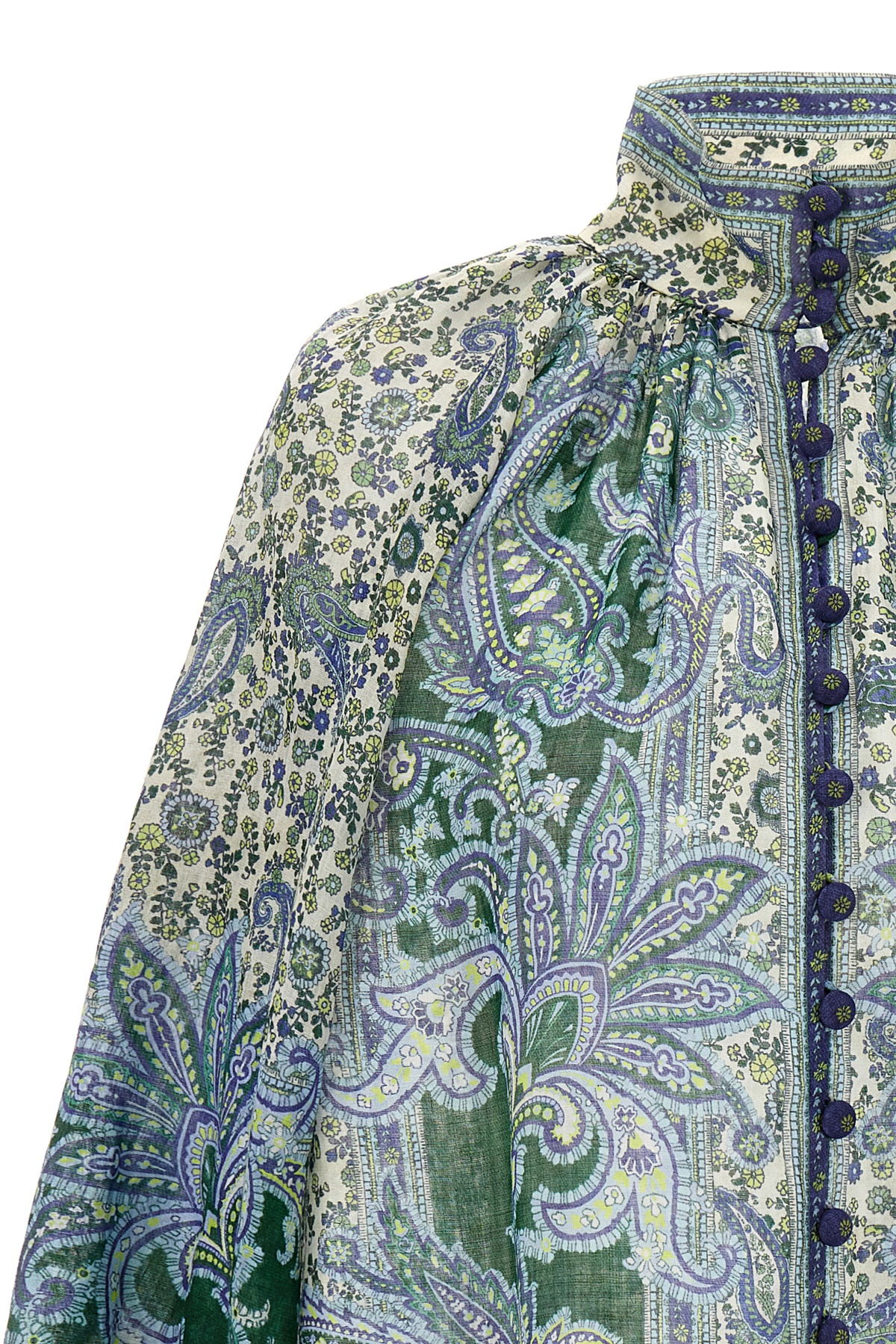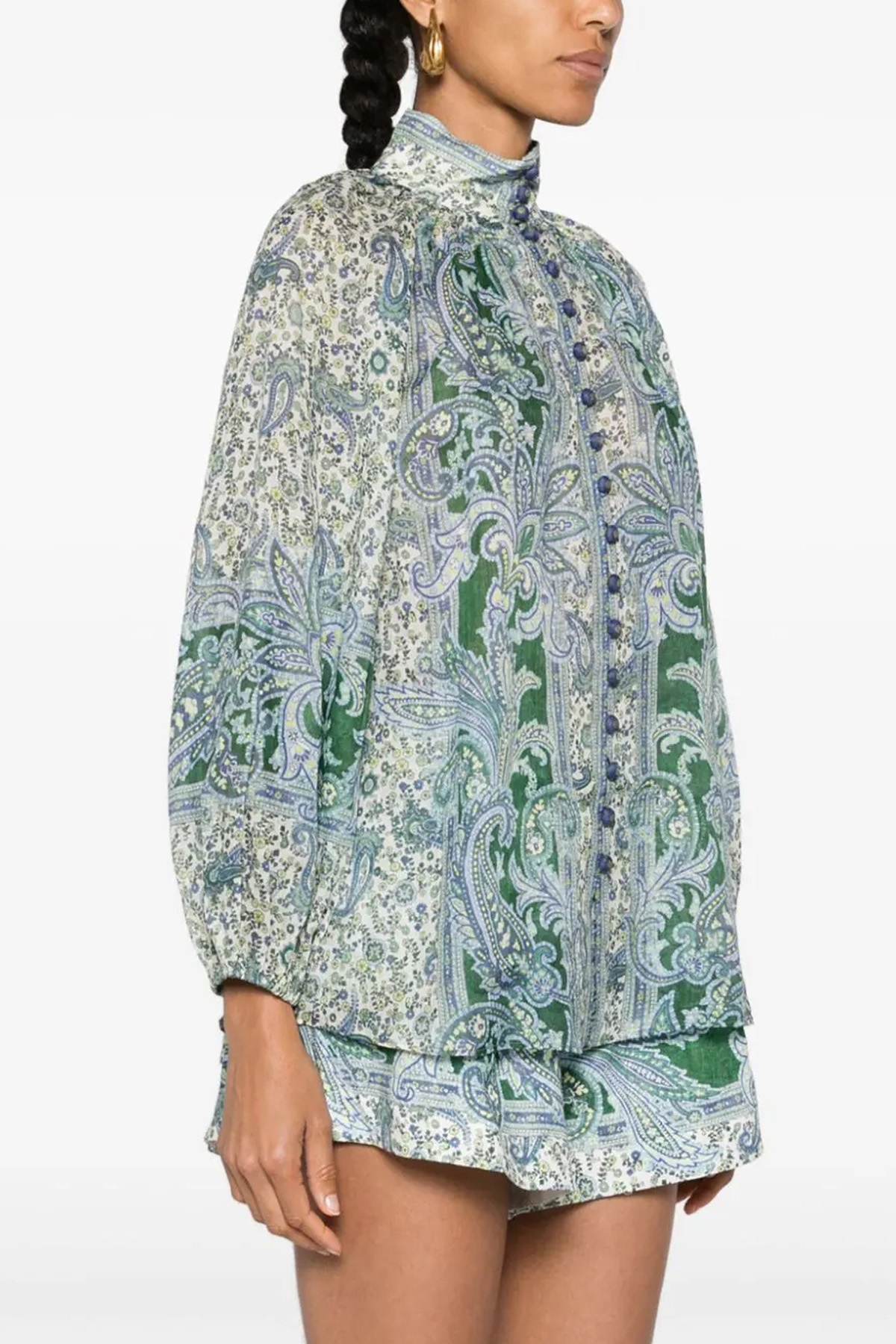 'Ottie Billow' bandana-print ramie shirt with button closure, high neck, long sleeves with elastic cuffs.