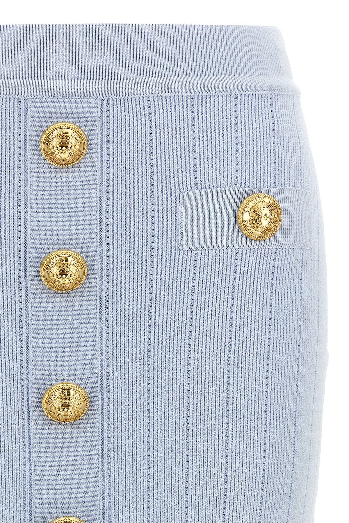 Stretch viscose blend skirt with 'Chiocciola' logo buttons, trompe-l'œil pockets and back zip closure.