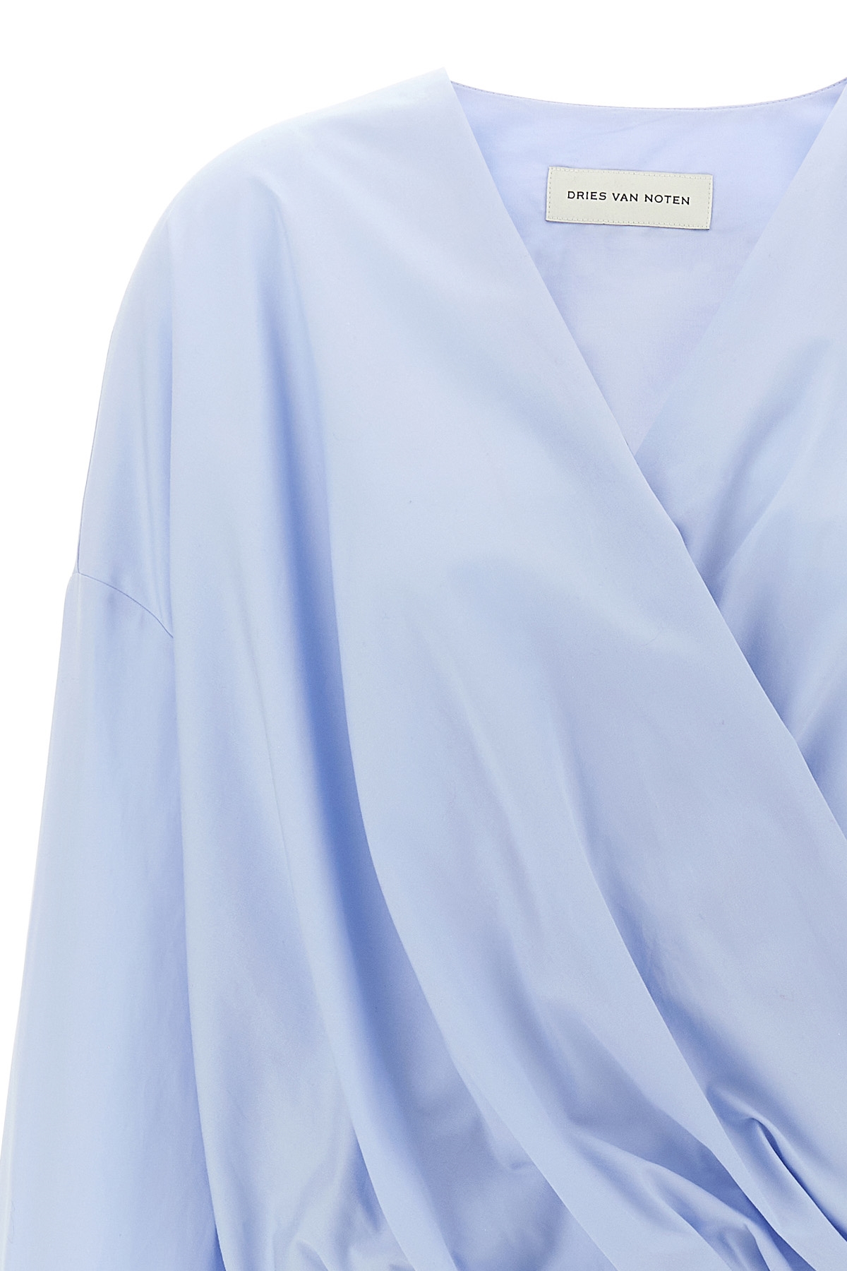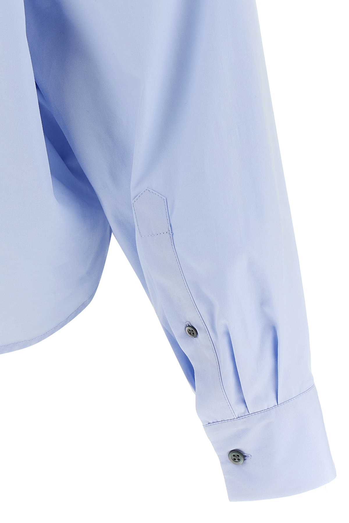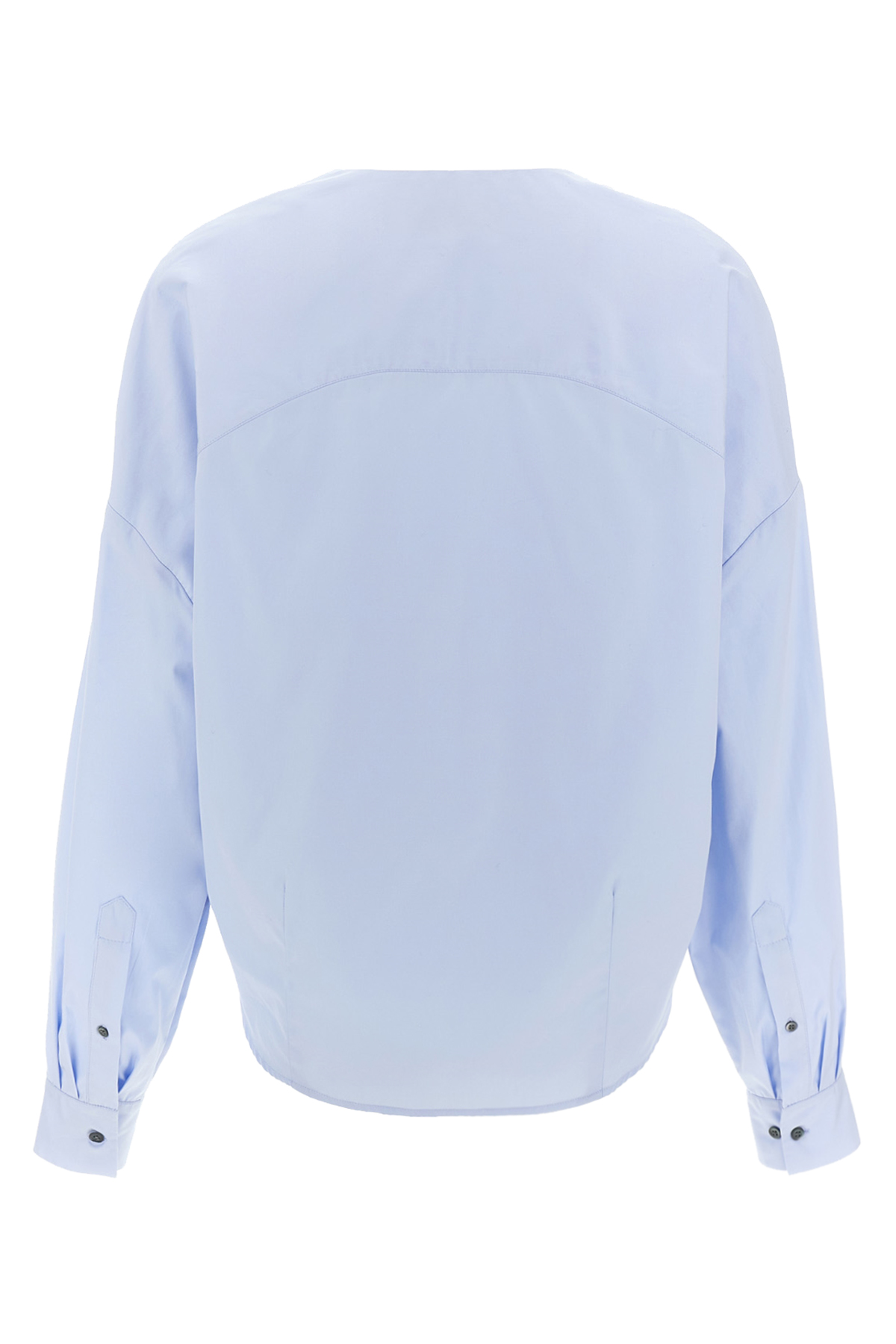 'Camiel' blouse in cotton poplin with front braid, V-neck and curl on the hem, long sleeves with cuffs and dropped shoulder.