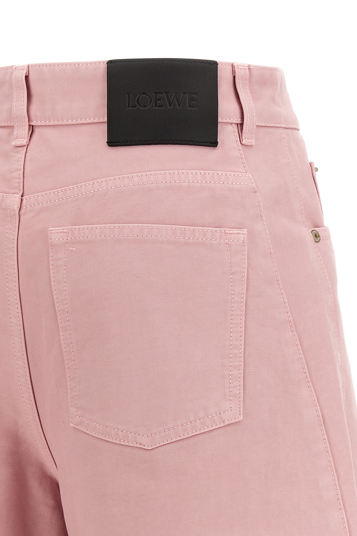 Cotton trousers, knee stitching detail, high waist model and wide leg on the hips, front zip and button closure, pockets, back leather logo tag.
