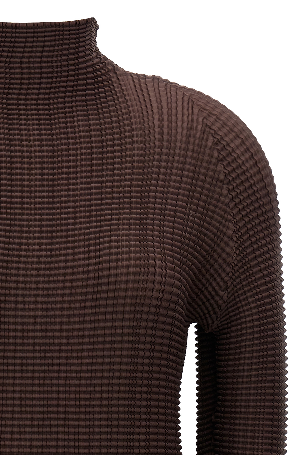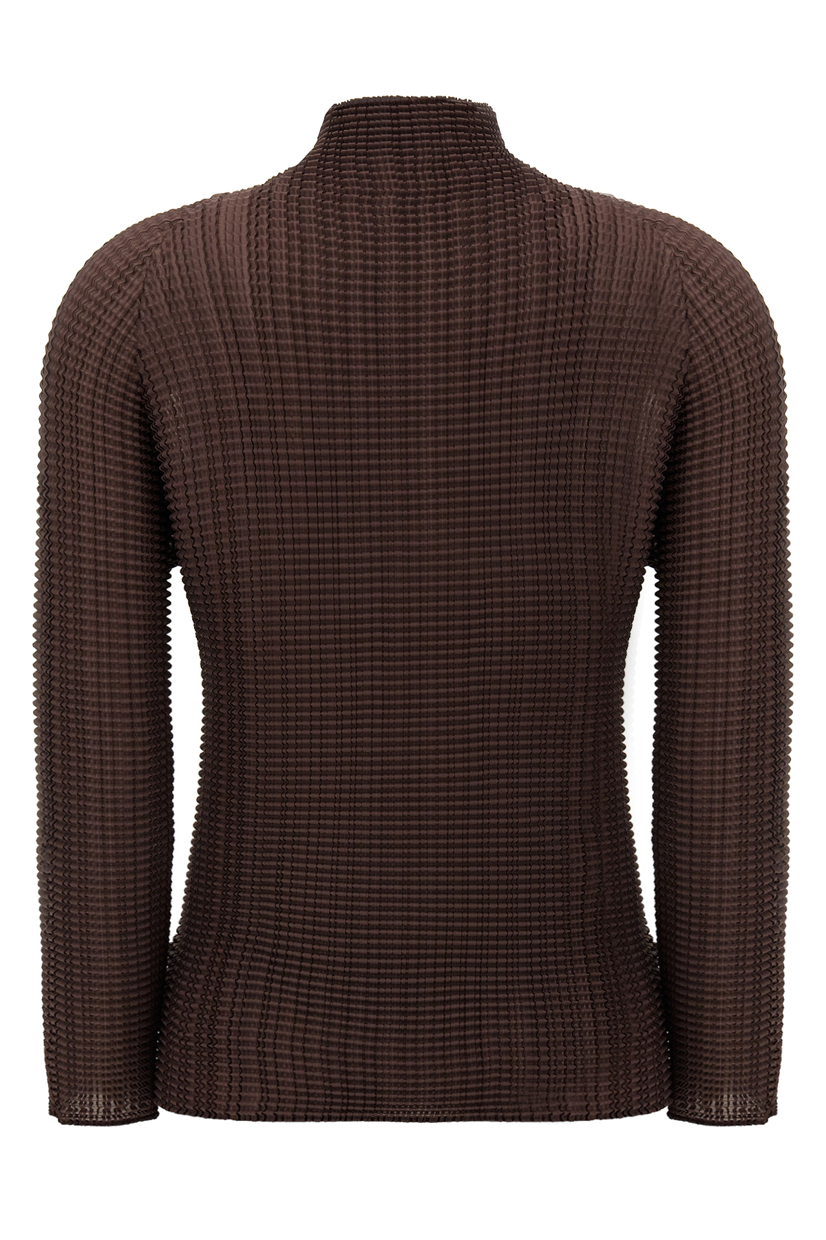 'Wooly Pleats-56' pleated fabric blouse with high neck and long sleeves. SUSTAINABLE: product made from recycled polyester.