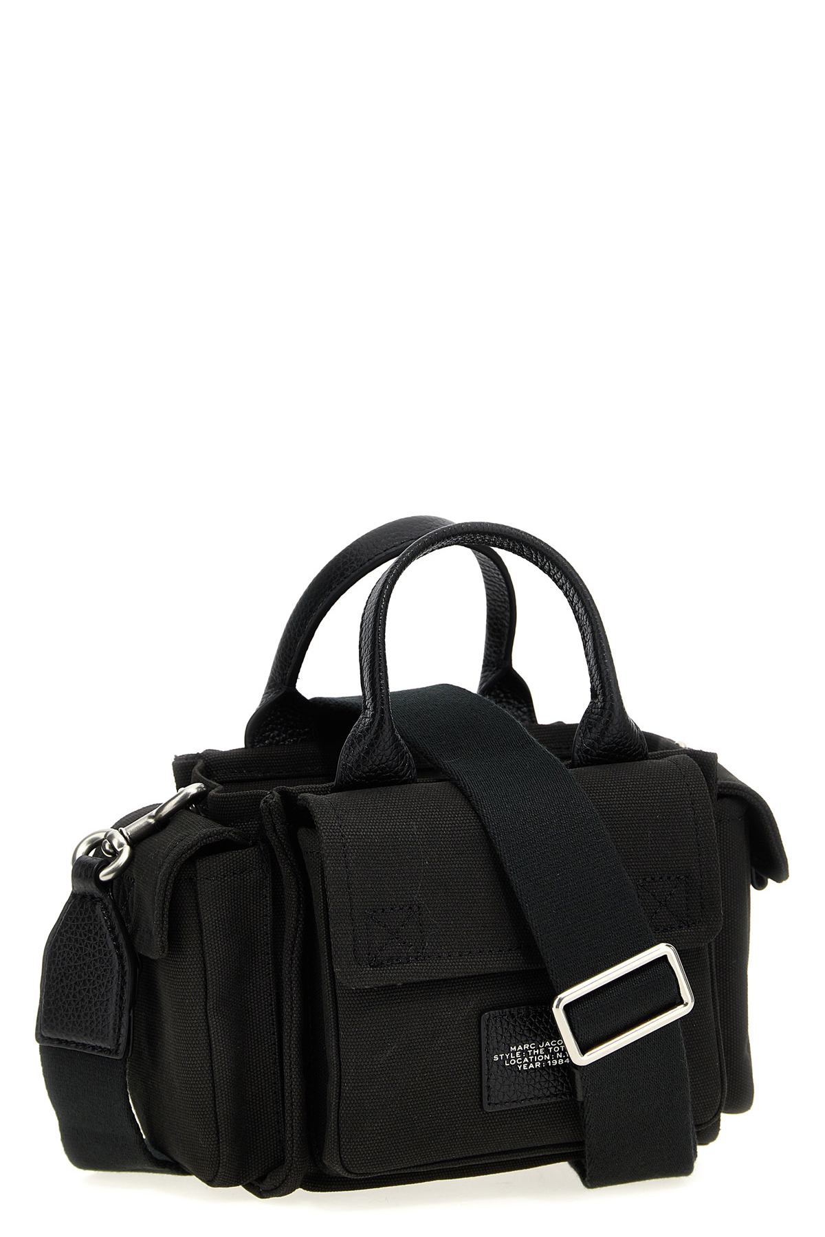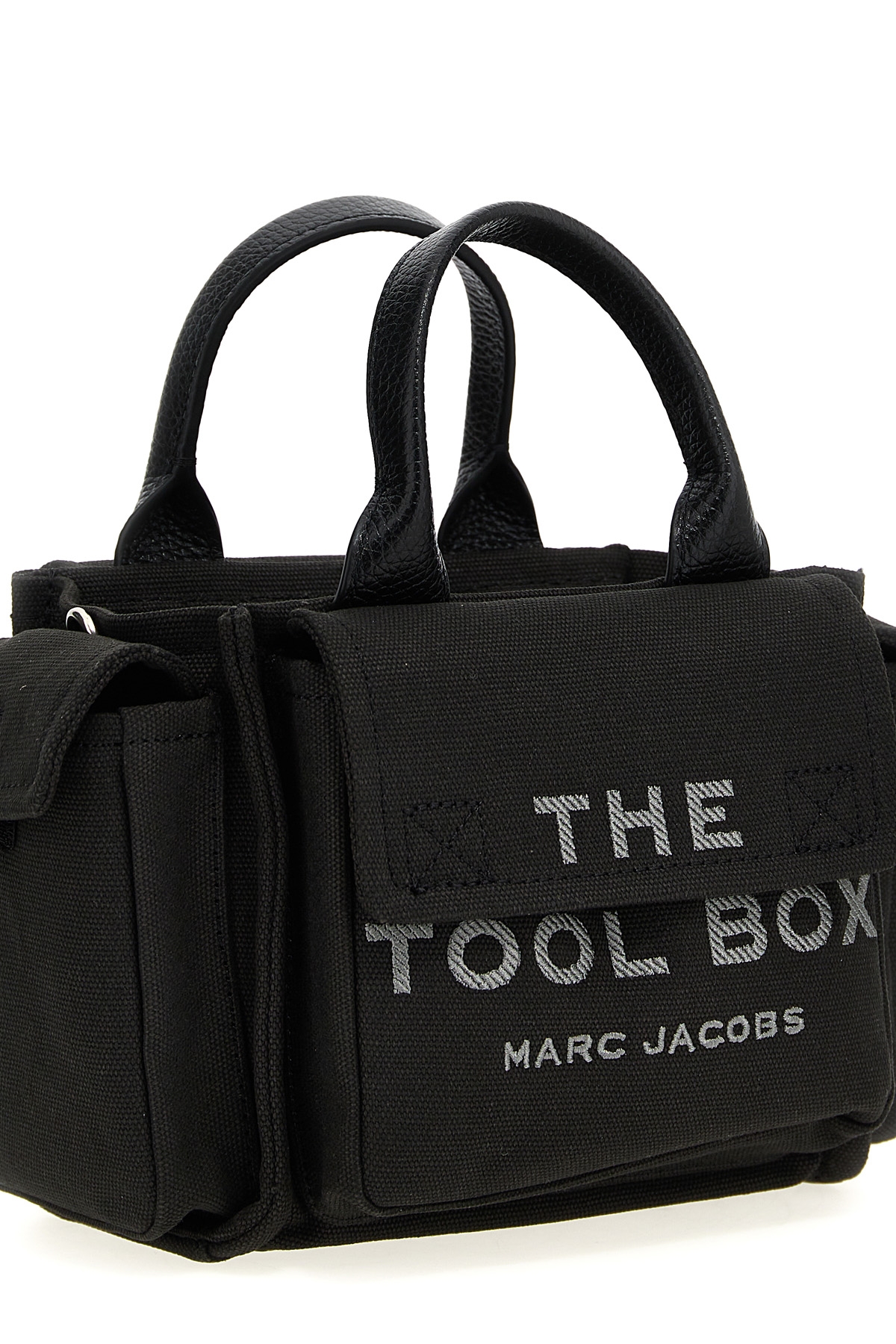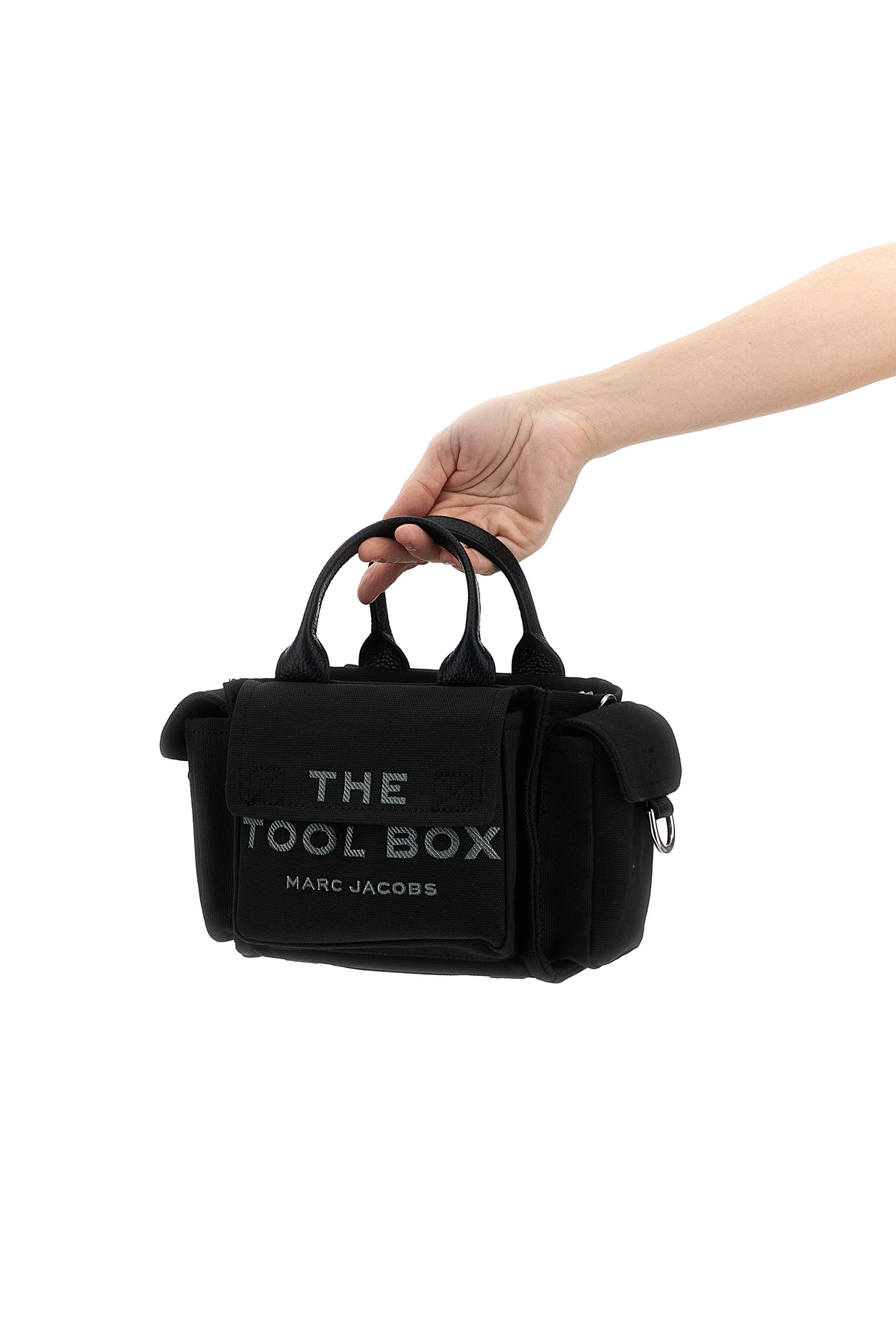 'The Crossbody Tool Box' textured cotton canvas crossbody bag, front logo embroidery, all-over cargo pockets, double fixed leather handle, zip closure, adjustable and removable shoulder strap. The canvas canvas is bound to fade and relax over time.