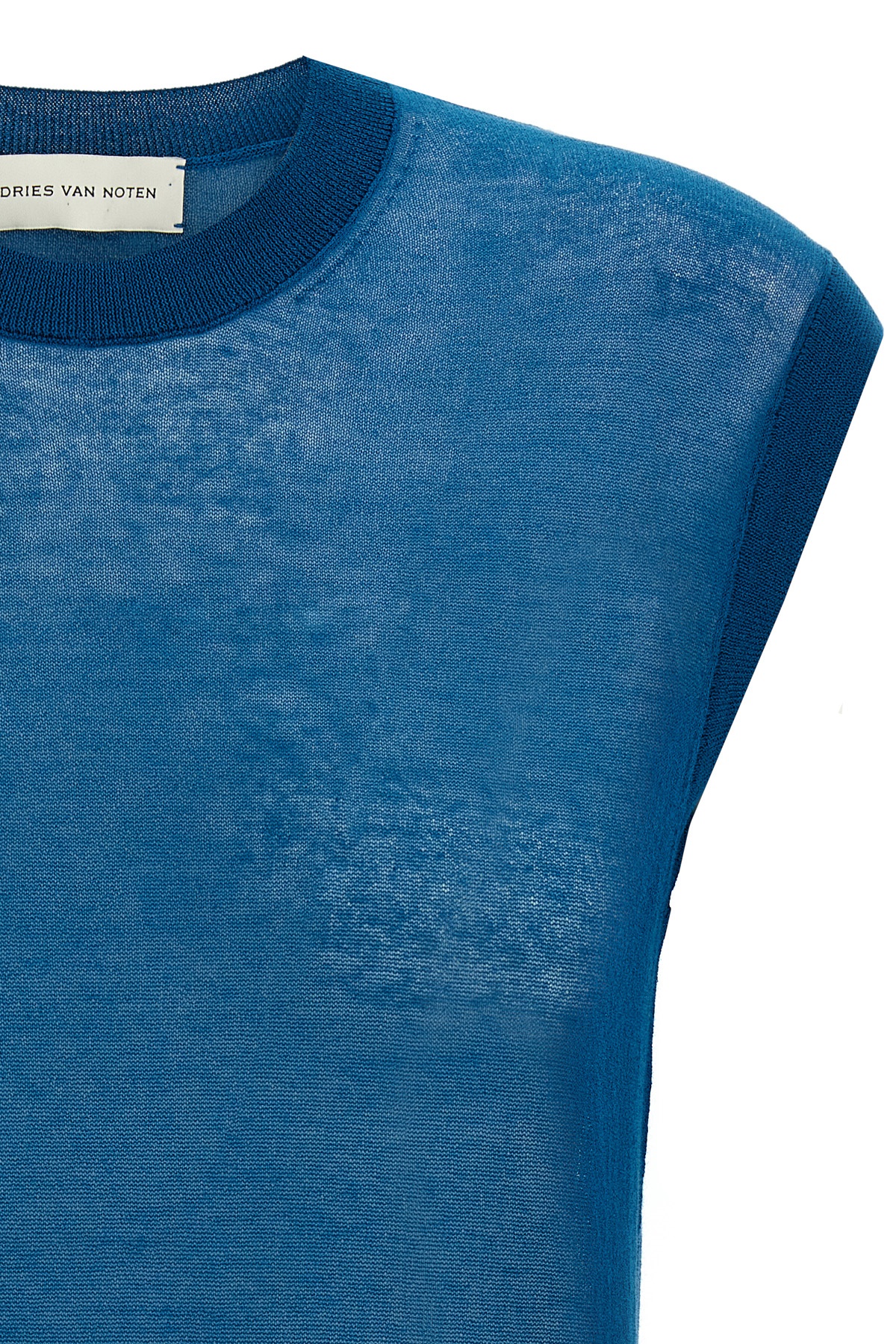 'Tamara' vest in semi-transparent cotton blend with crew neck.