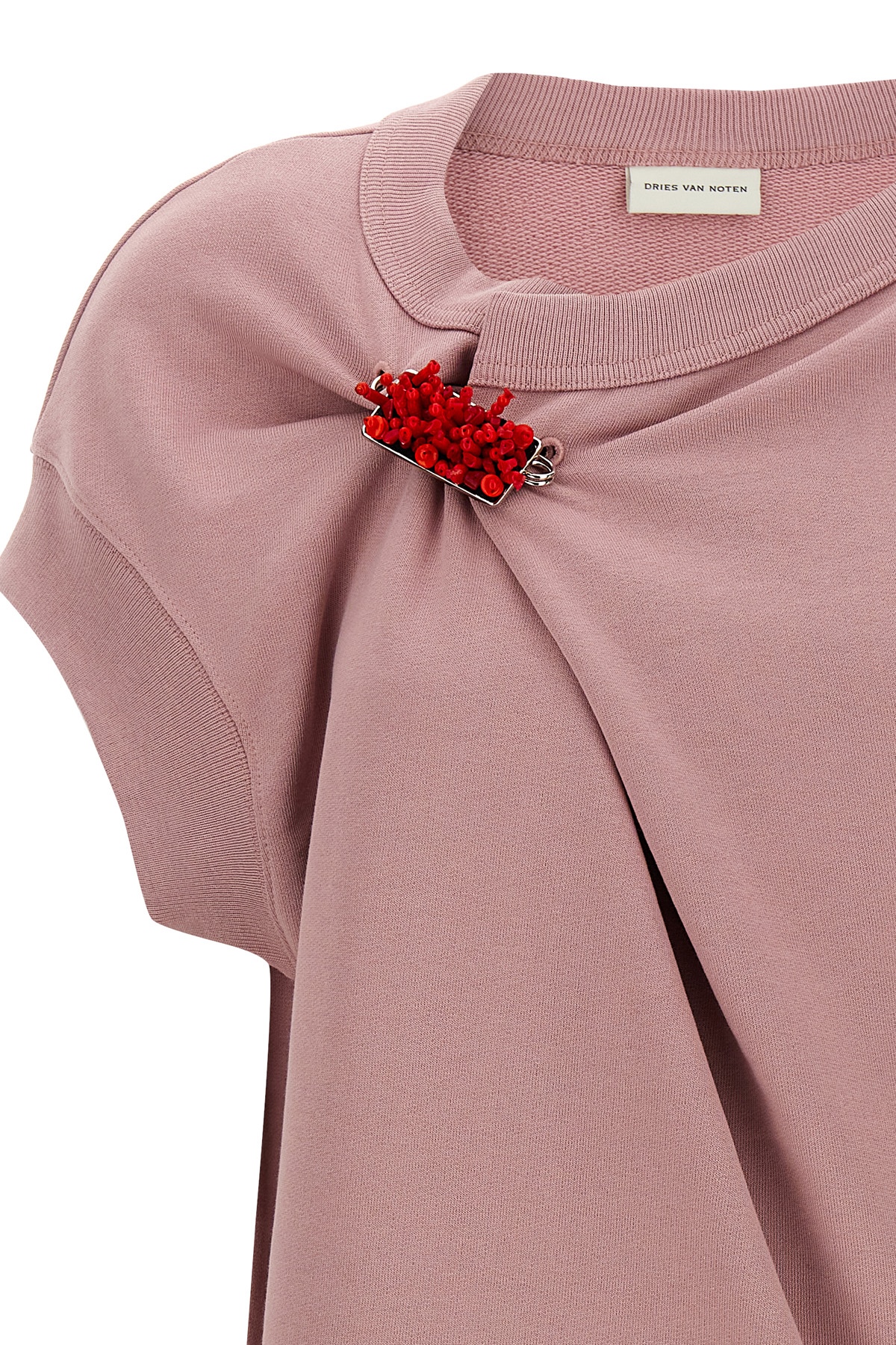 'Hatties Bis' sweatshirt in brushed cotton, front curled with removable pin, crewneck, sleeveless with dropped shoulders.