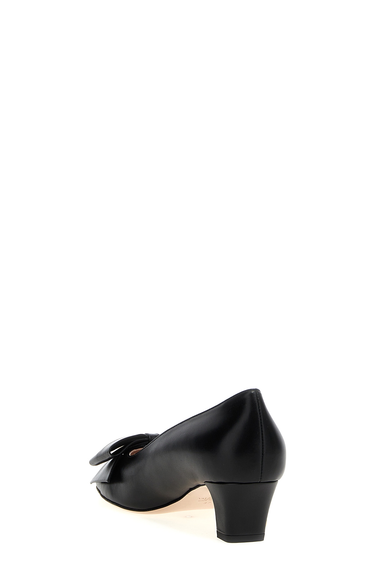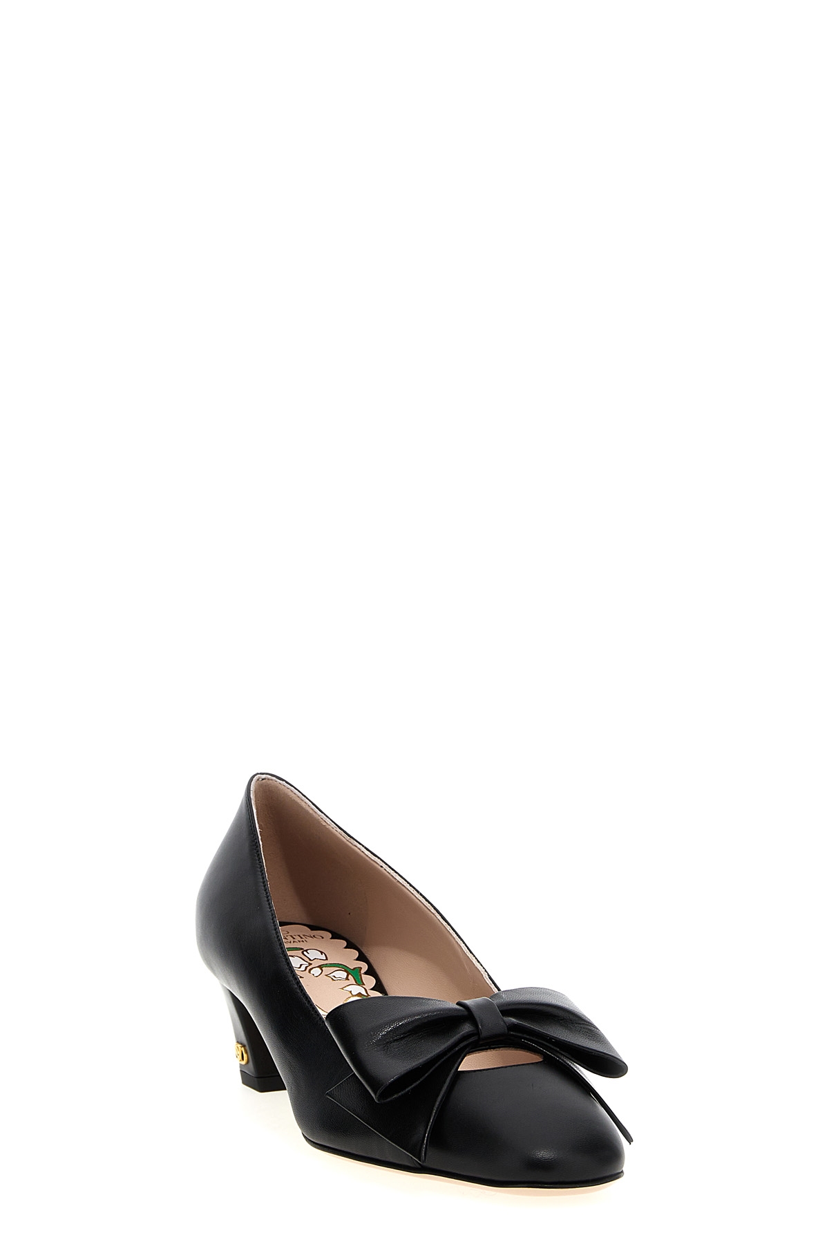 'Bowow' leather pumps with bow application and front cut-out detail, heel with antiqued effect metal VLogo applied on the side, leather sole.