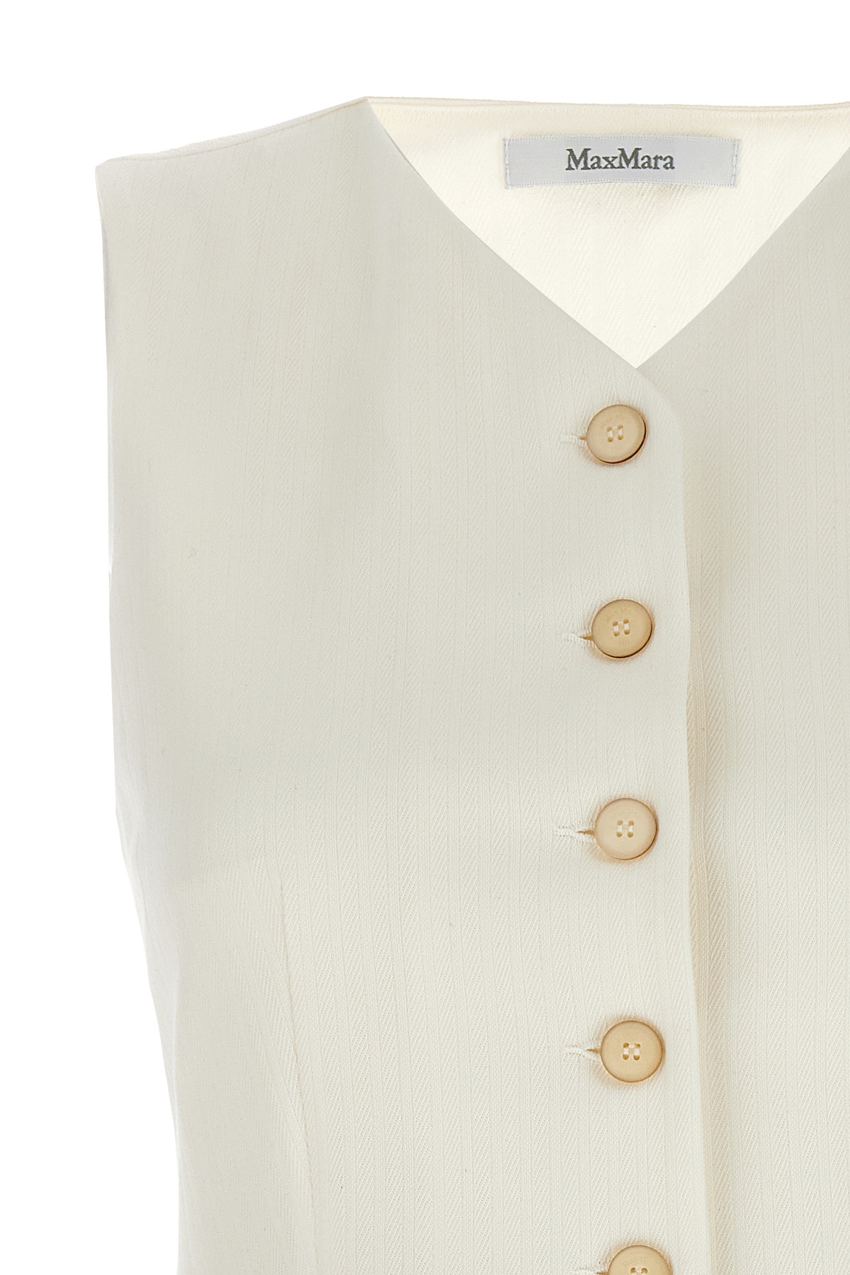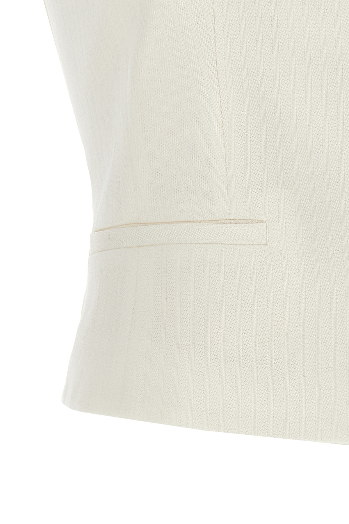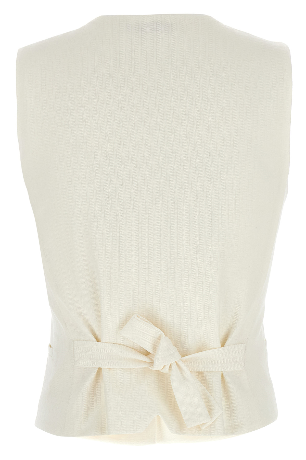 'Mirella' cotton jersey vest with pinstriped jacquard design, semi-lined model with small V-neck, button closure, pockets, back strap to tie.