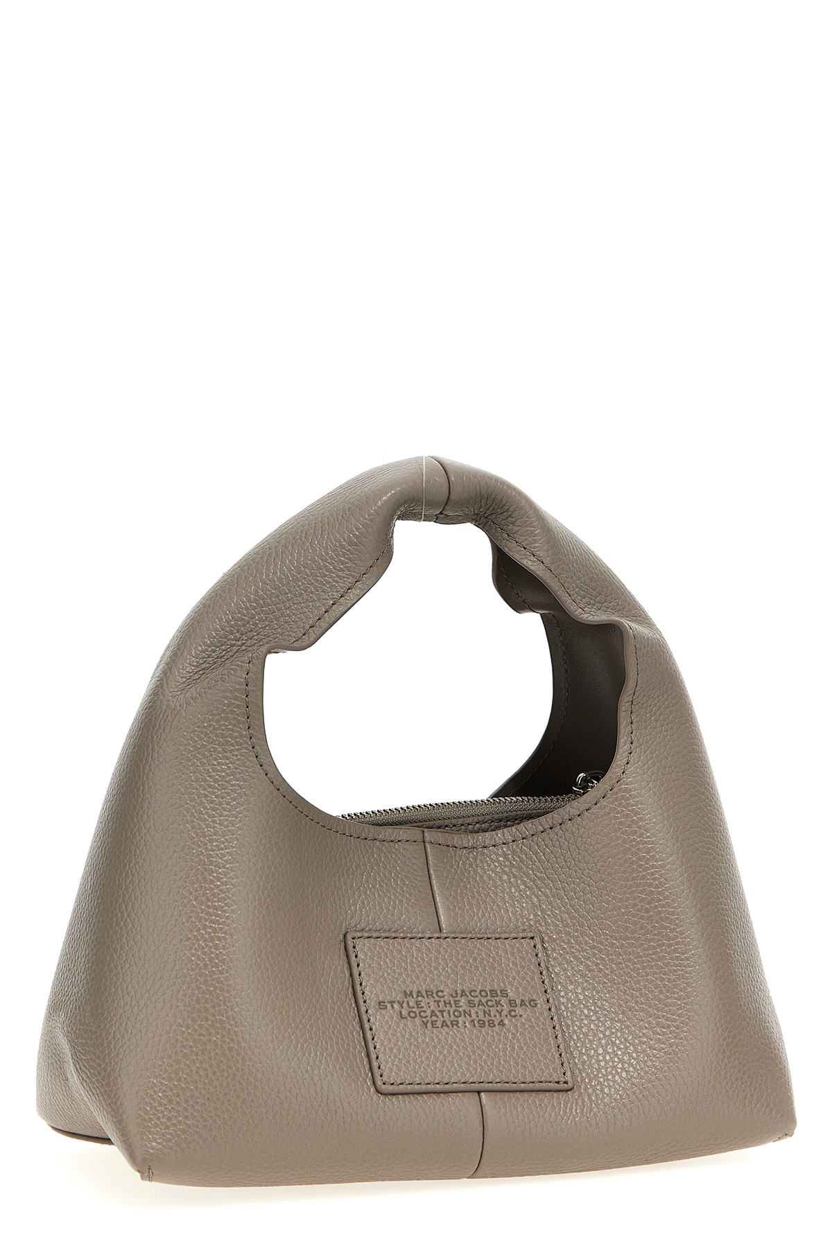 'The Mini Sack Bag' handbag in full-grain leather with front embossed logo, fixed handle, magnetic closure, canvas clutch bag and removable matching leather.