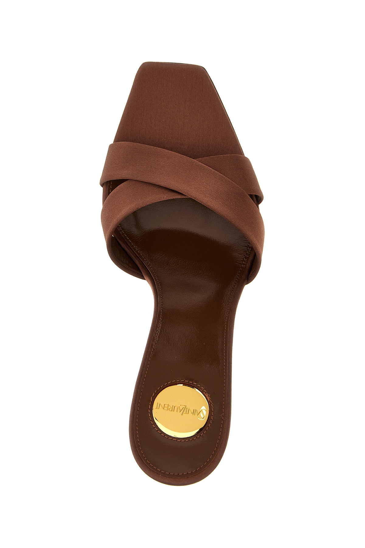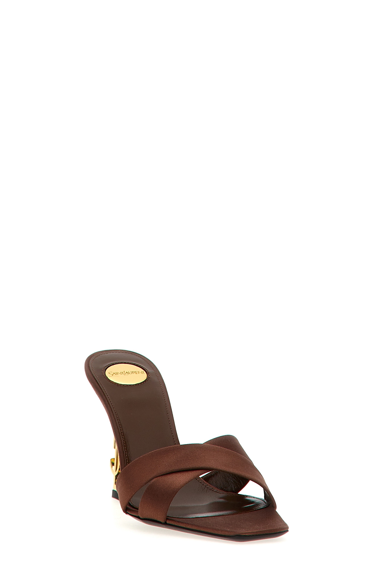 Opyum' satin sandals with braided bands and a metal jewel heel detail with YSL initials.