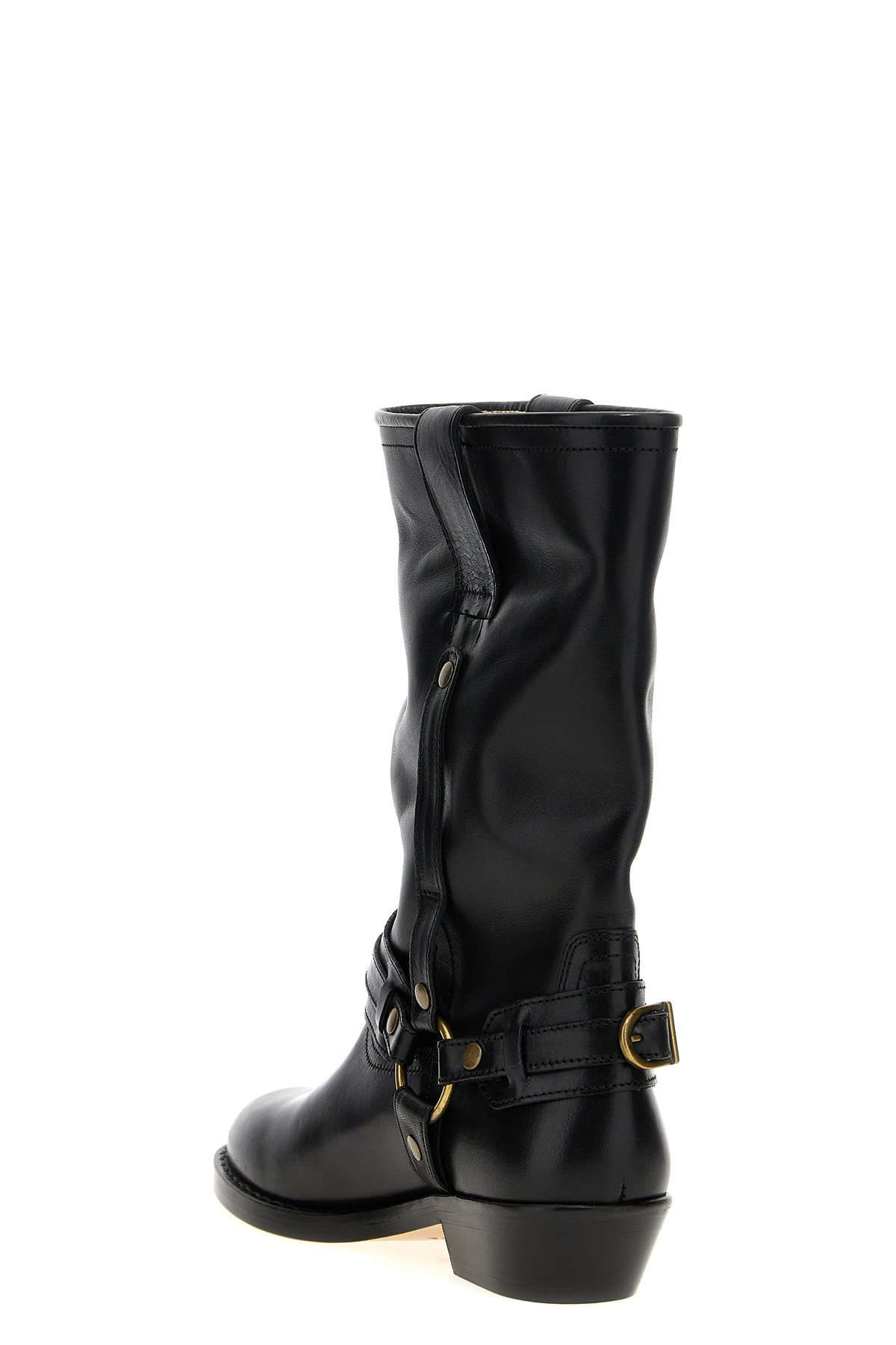 'Heiko' leather ankle boots with straps and metal details, rounded toe, low heel and leather sole.