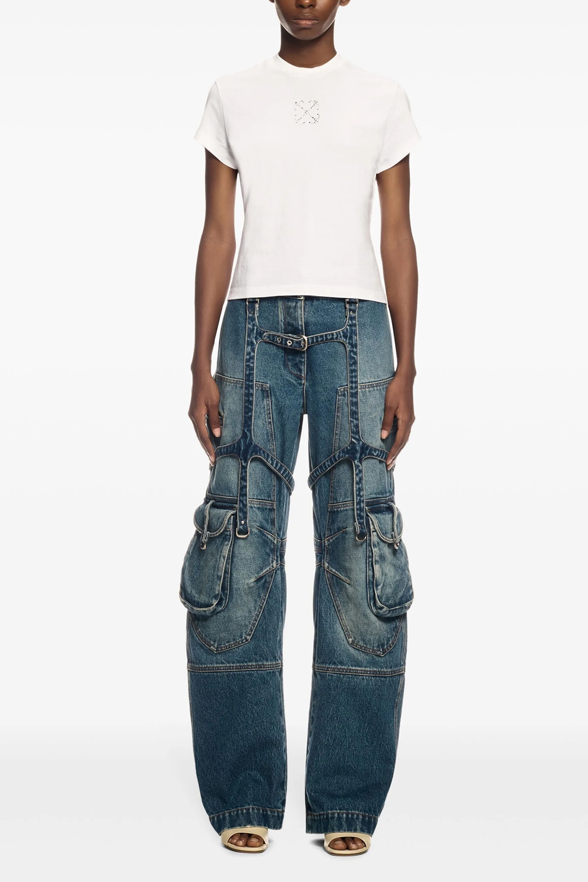 Cotton T-shirt with 'Arrow Jewel' rhinestone pattern on the front, crewneck, and short sleeves.