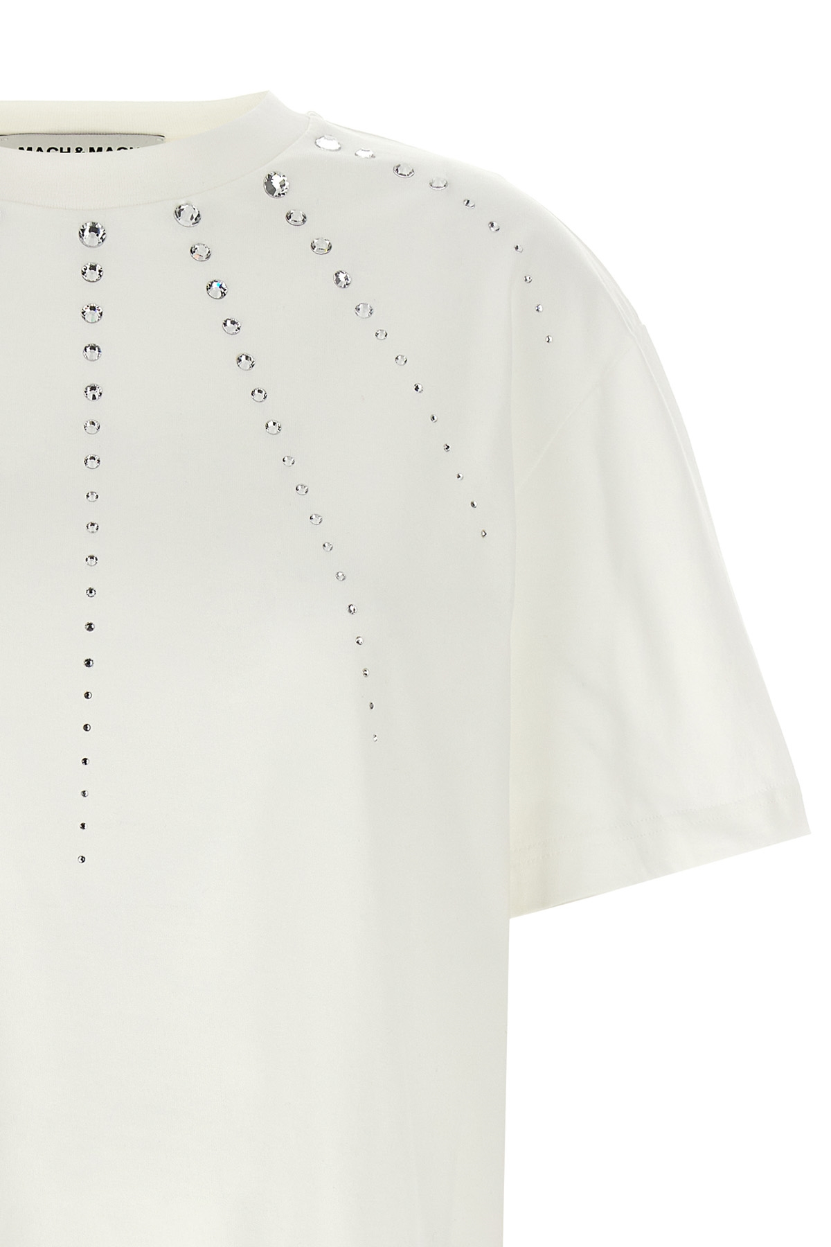 'Crystal Ray' cotton T-shirt with rhinestone applique on the front and back, crew neck, short sleeves.