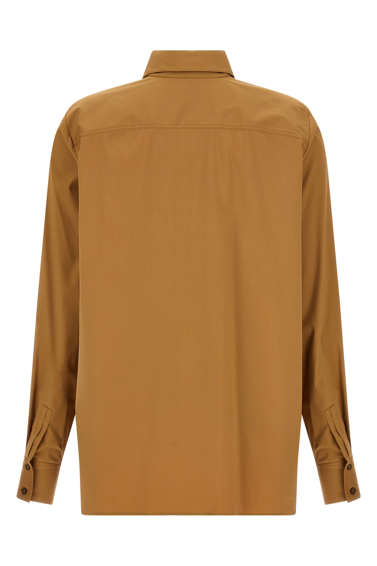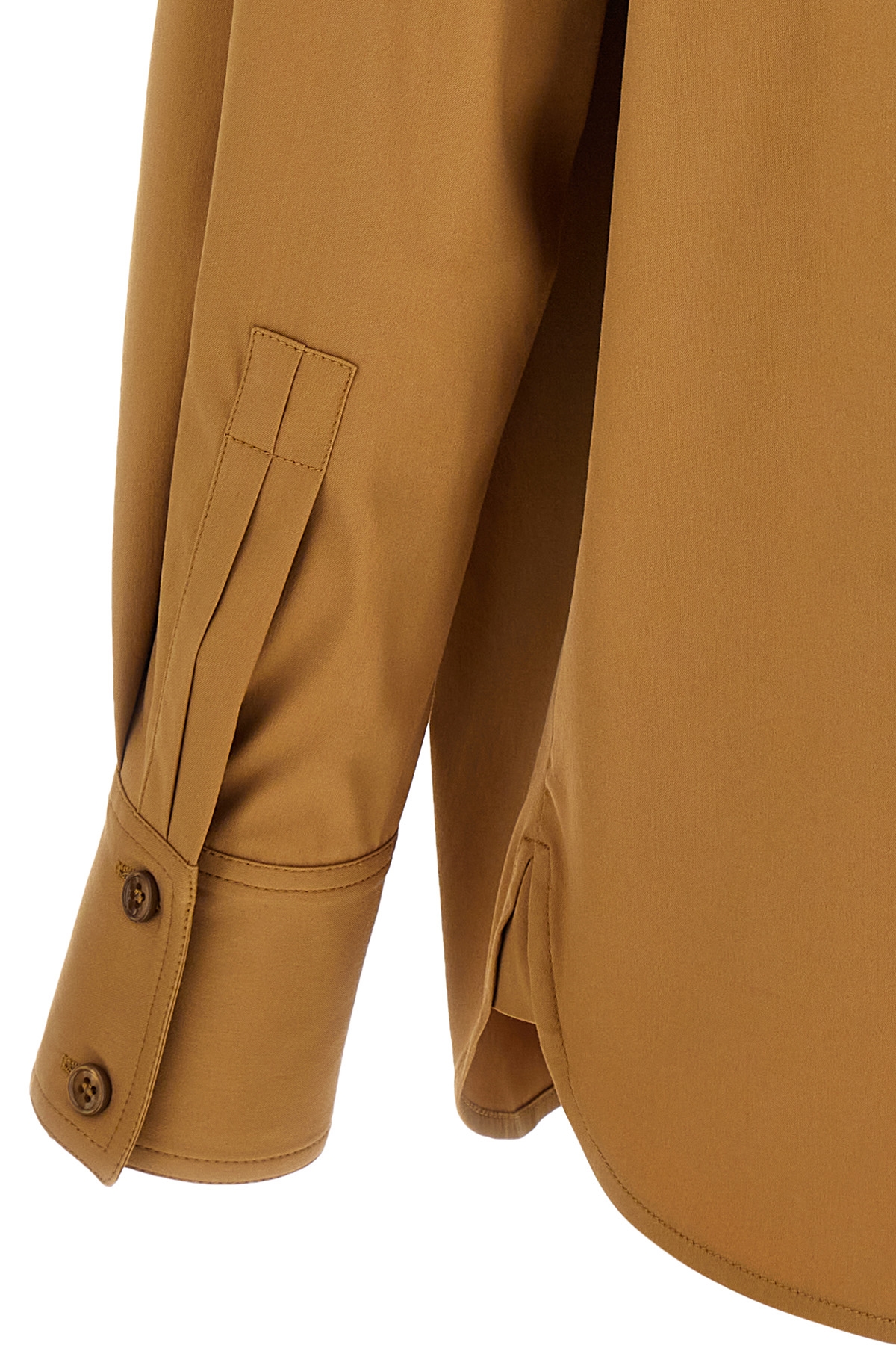 'SX07' blouse in cotton blend poplin, collar and buttons, ruffled shoulders, long sleeves with cuffs.