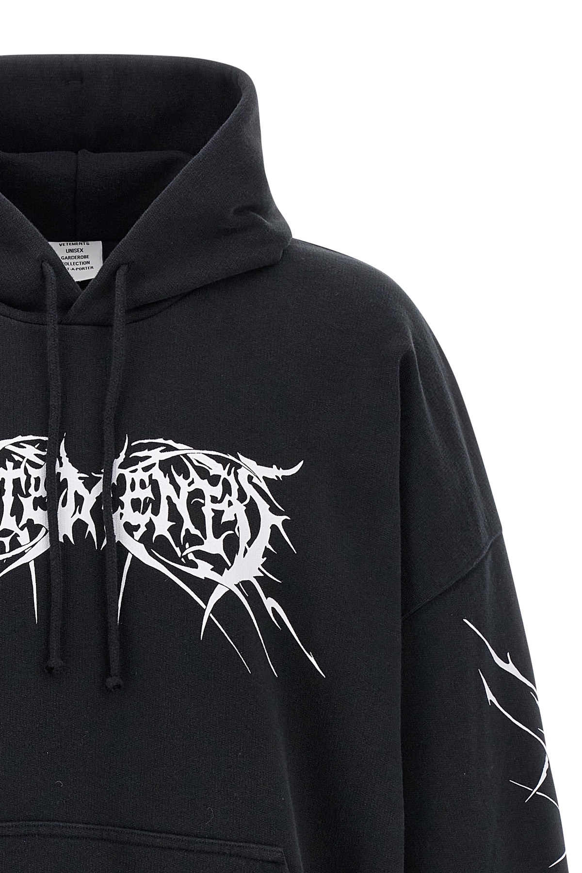 Double-sided cotton blend jersey hoodie with 'Black Death Metal' prints, boxy style with rolled hem on the slightly cropped hem, kangaroo pocket, long sleeves with dropped shoulders, and logo embroidery on the hood.