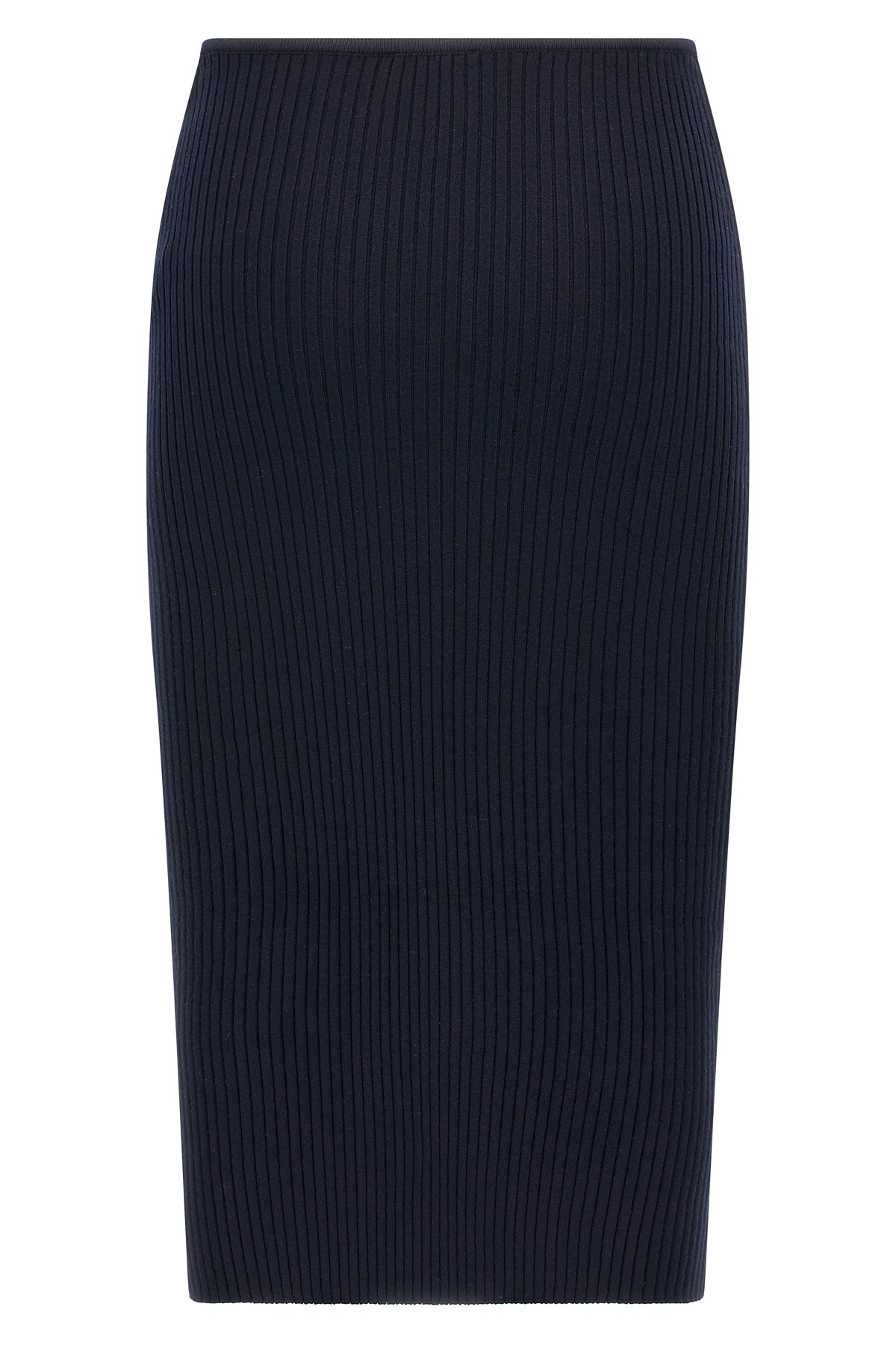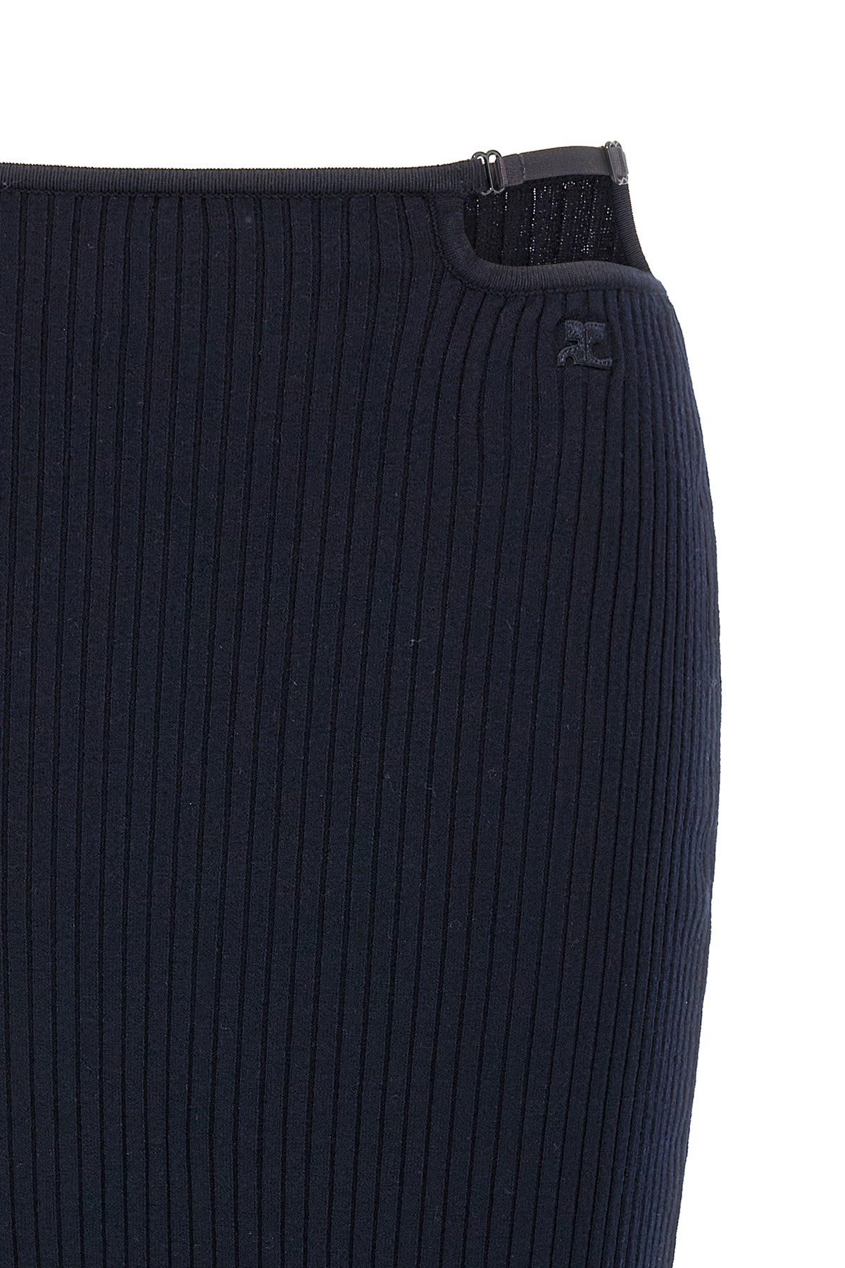 'Loop Rib knit' ribbed knit midi skirt, cut-out detail at the waist with adjustable strap, tonal logo patch.