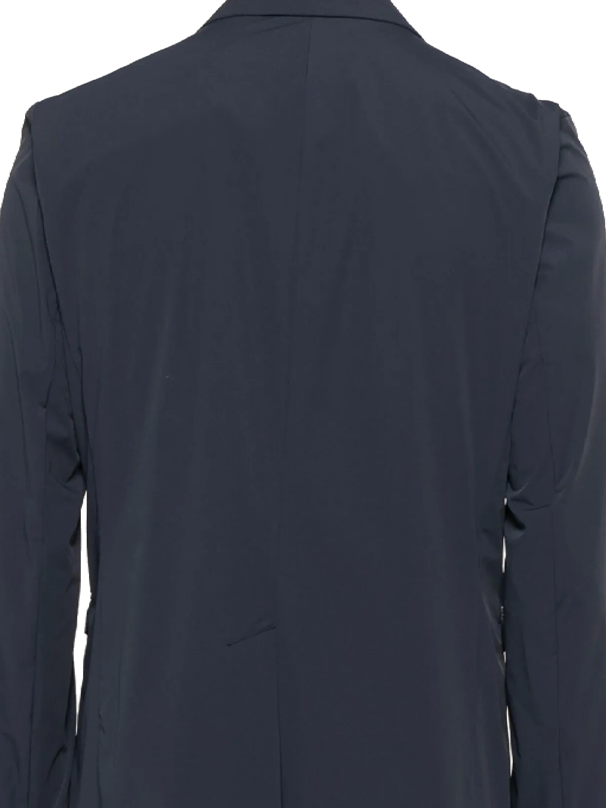 navy blue front button fastening chest welt pocket two side flap pockets central rear vent